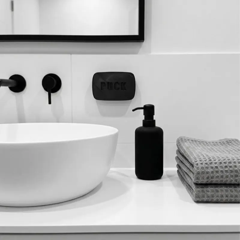 • Place the PUCK anywhere—bathroom, kitchen, across the room—you decide