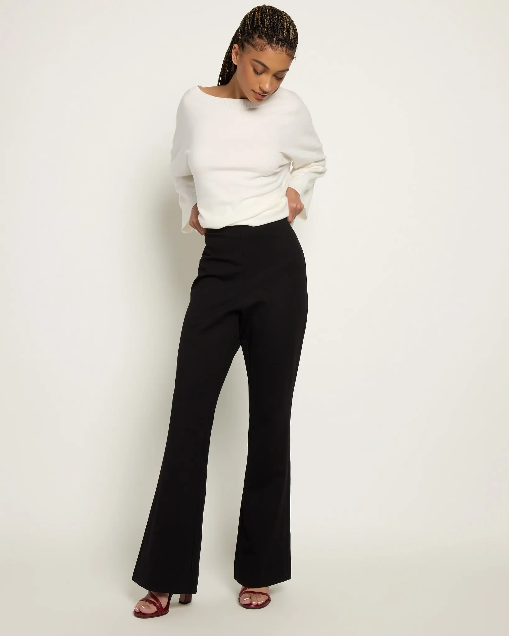 Feel chic and comfy in these pull-on flares. Fitted to flatter, these high-rise trousers are thoughtfully tailored to stay structured yet soft all day long. Slightly stretchy to move with you from meetings to evenings.