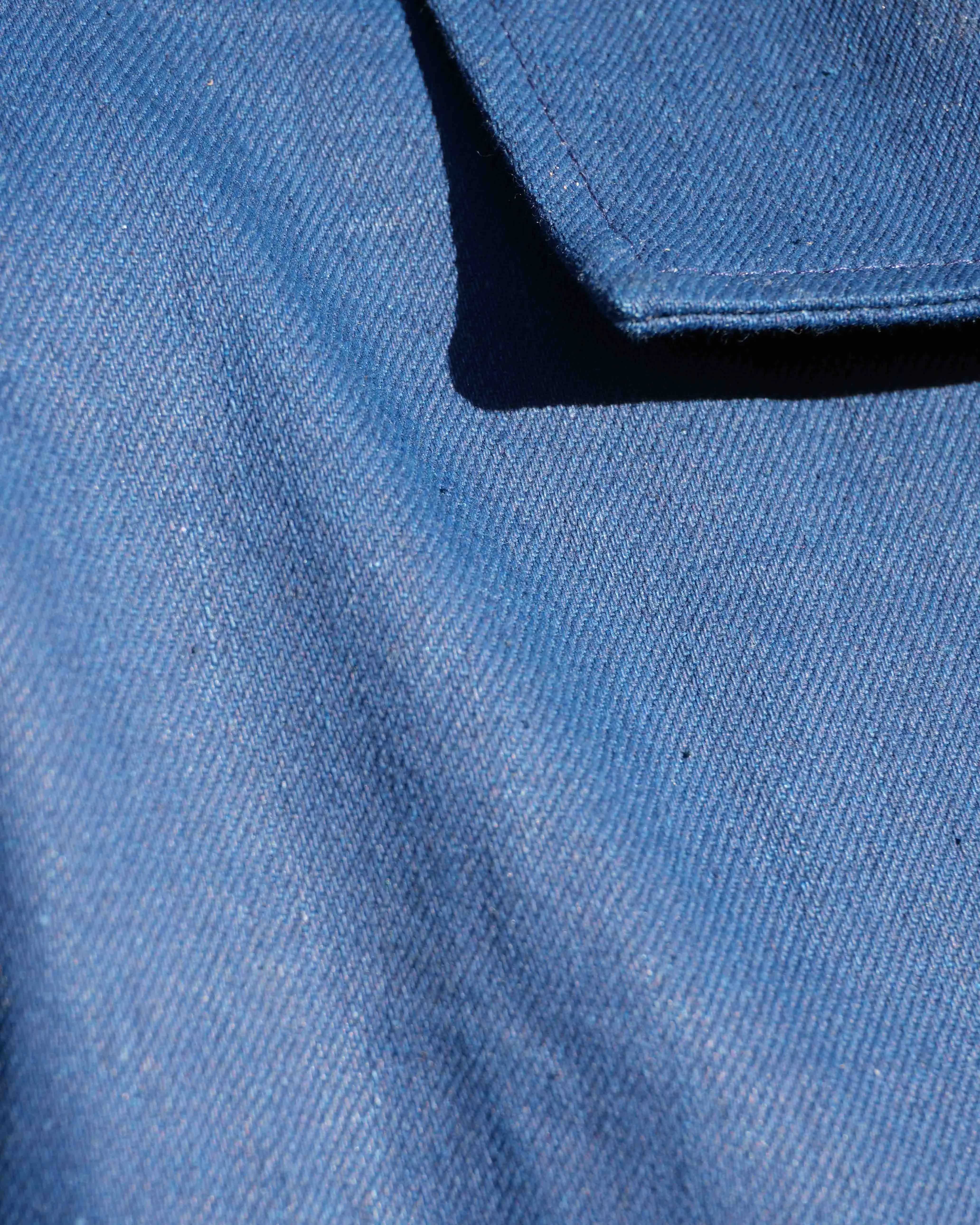 Cut from an indigo rope-dyed denim, with a rich cobalt blue color and a soft brushed feel on the inside.