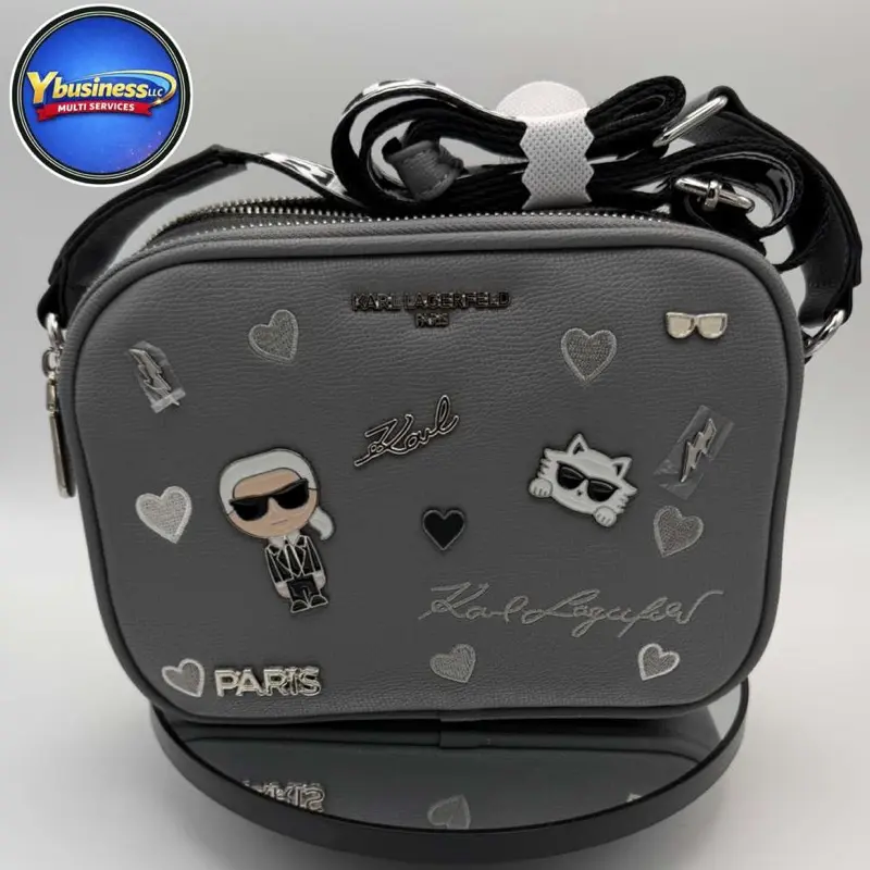 Karl Lagerfeld Grey Crossbody Bag - Luxury Cosmetic Bag with Unique Design and Colorful Pattern for Travel