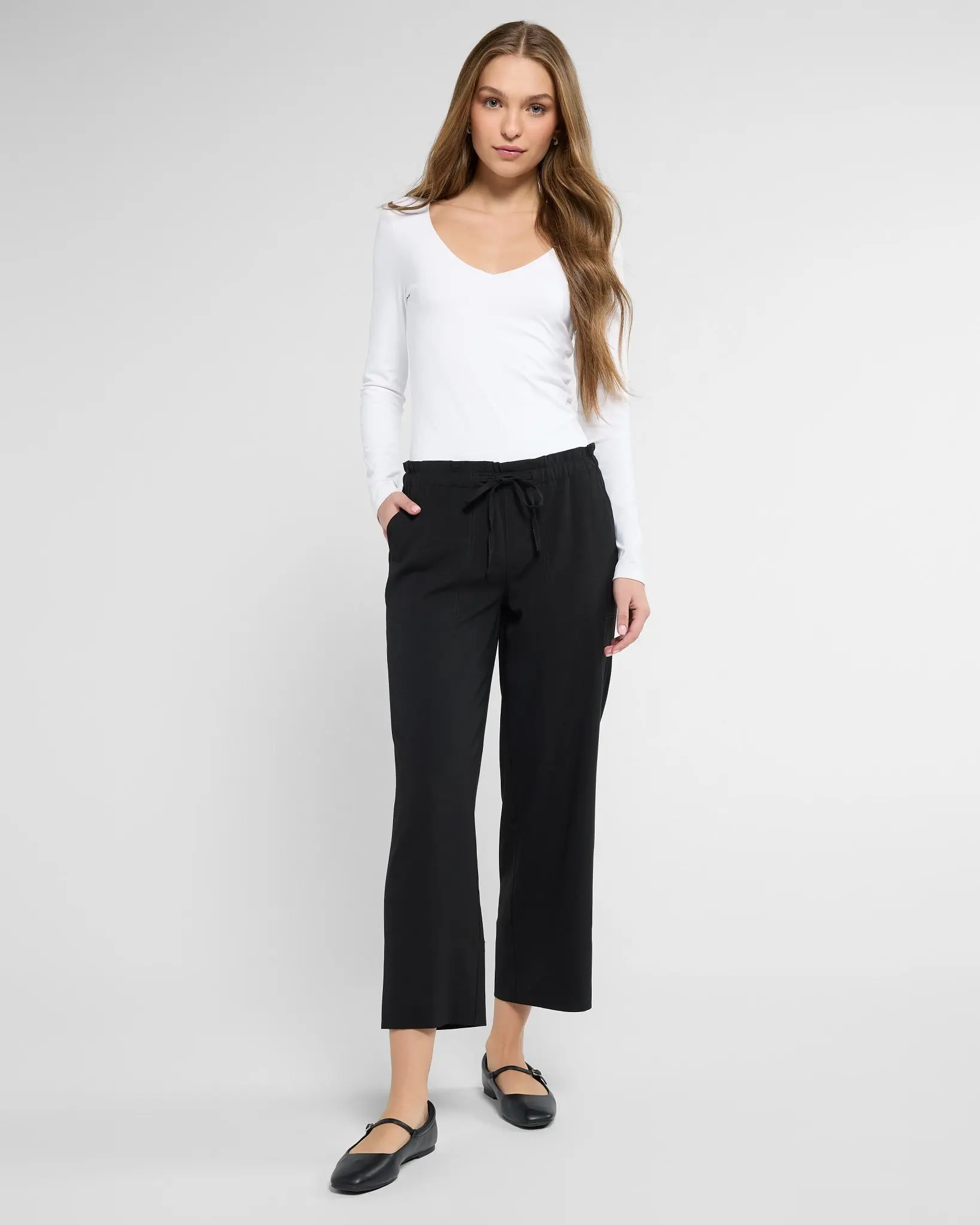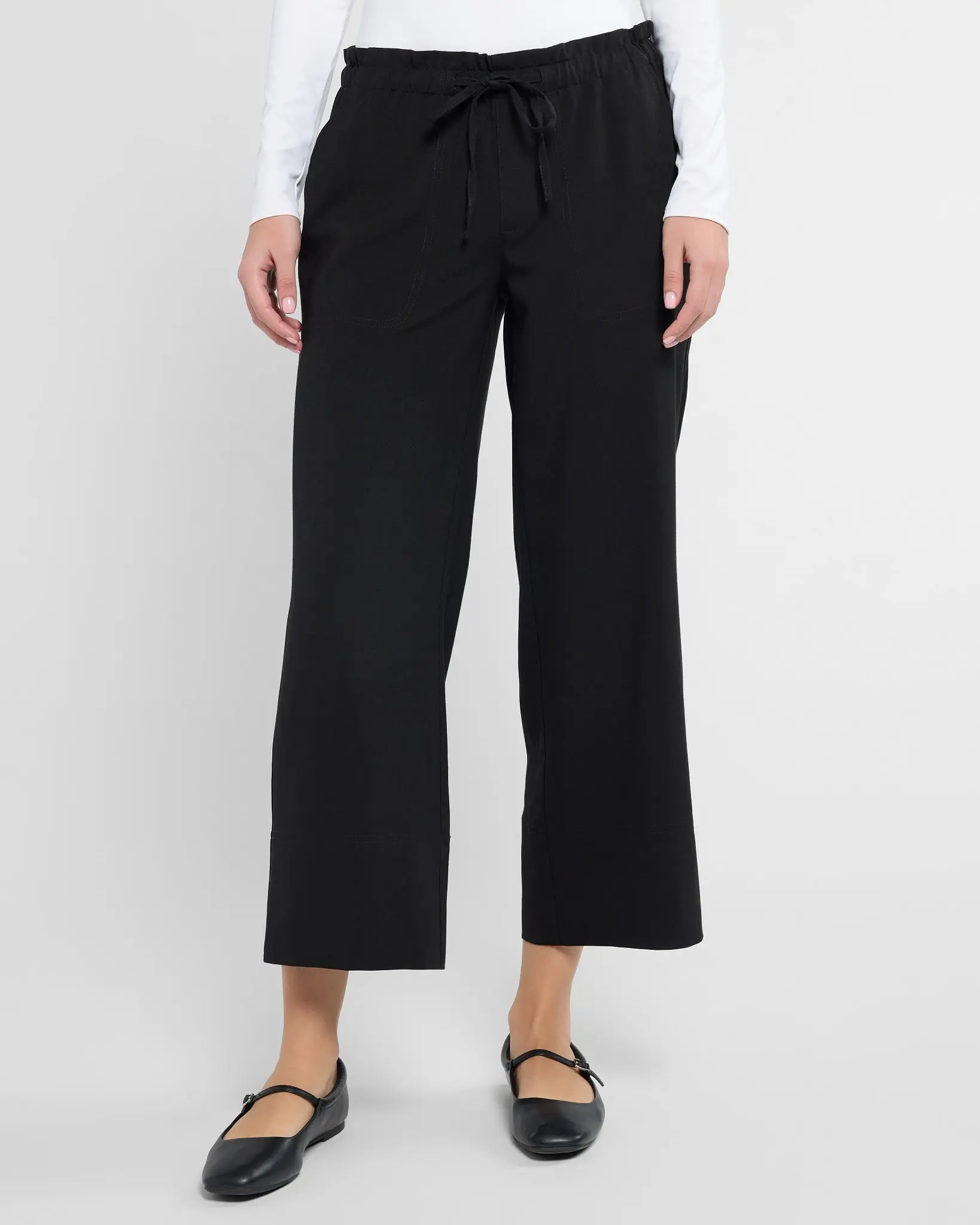 You can move from desk to dinner in a flash with these pull-on pants! Cropped length with a comfy mid-rise elastic waistband. Made of a silk-soft rayon blend that's oh-so-stretchy.