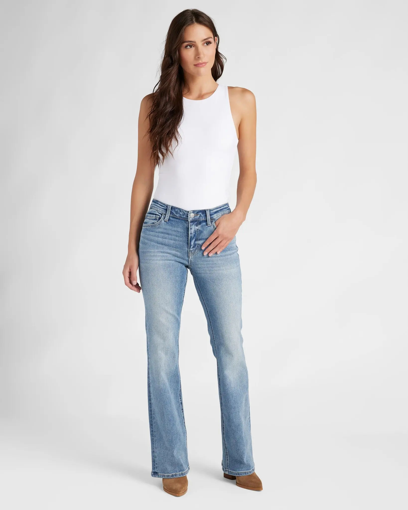 These mid-rise bootcut jeans are a wardrobe staple. Fitted to your curves with five functional pockets and light fading for a lived-in look. Made from soft midweight denim with moderate stretch.