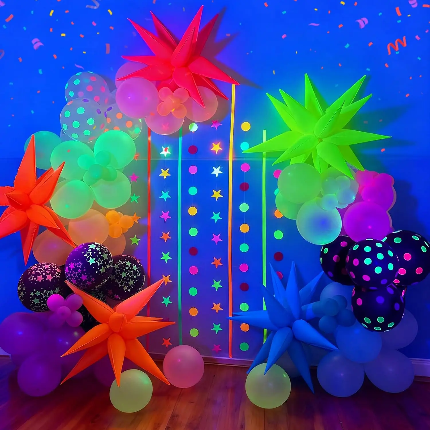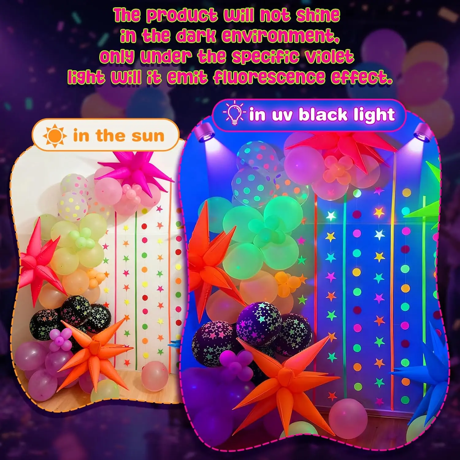 Glow Neon UV Balloons Kit Foil Star Cone Balloons for Blacklight Birthday Party Decorations Set!