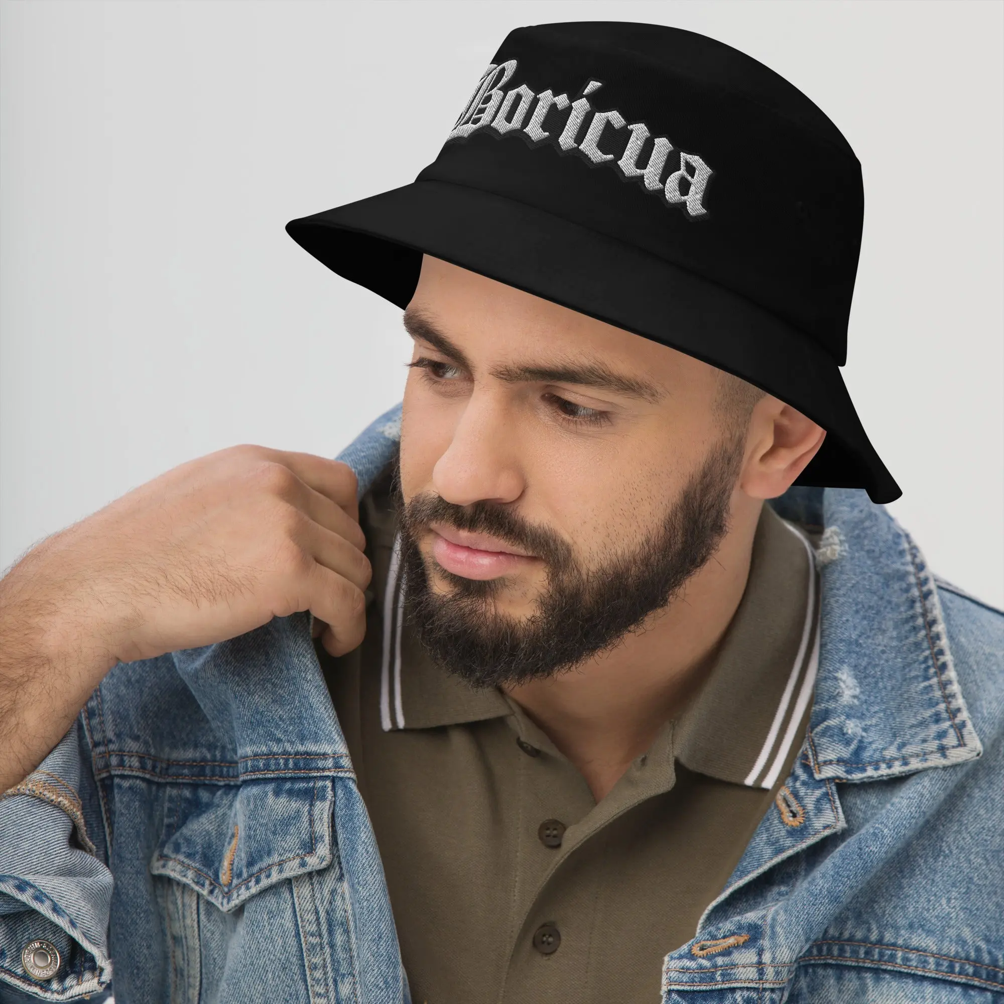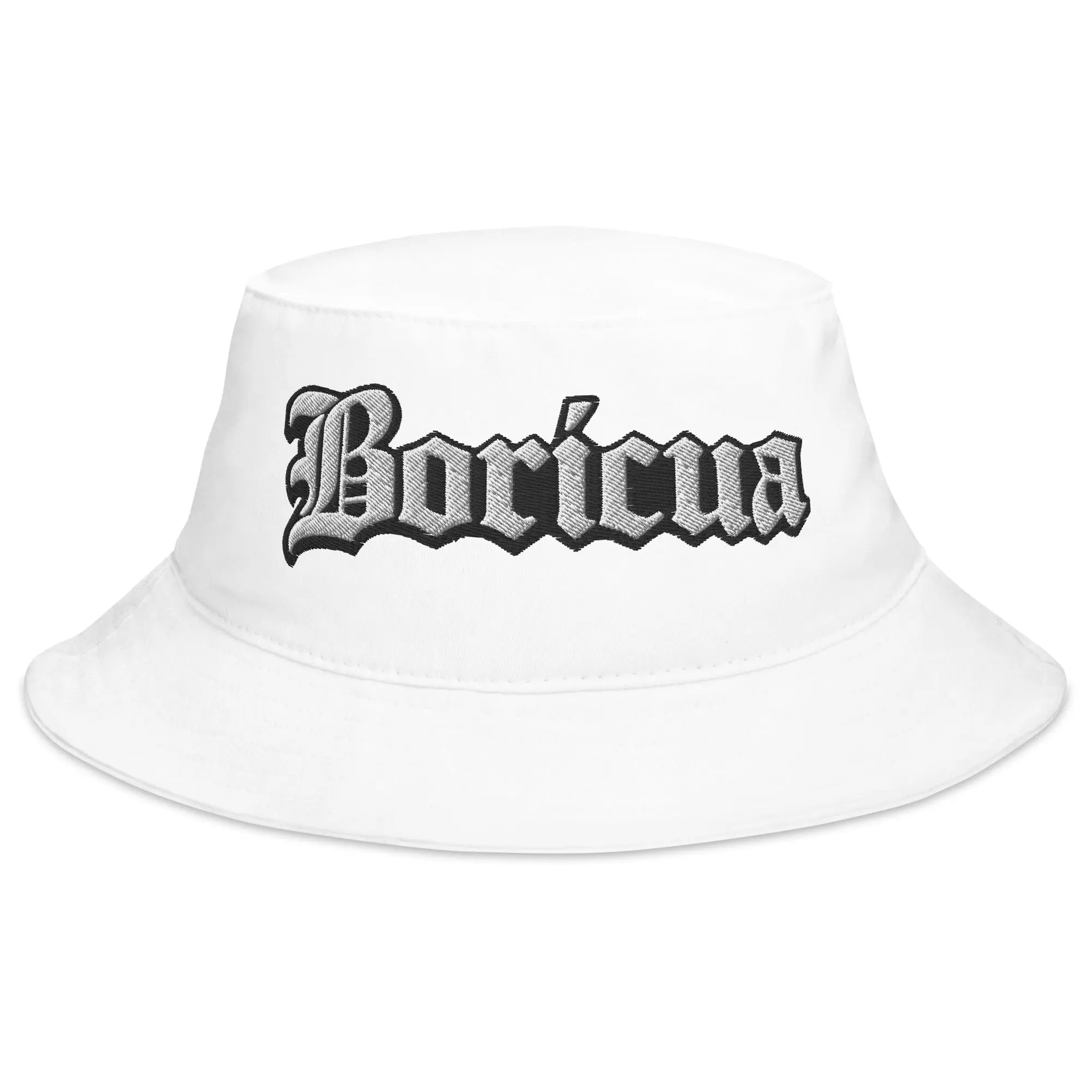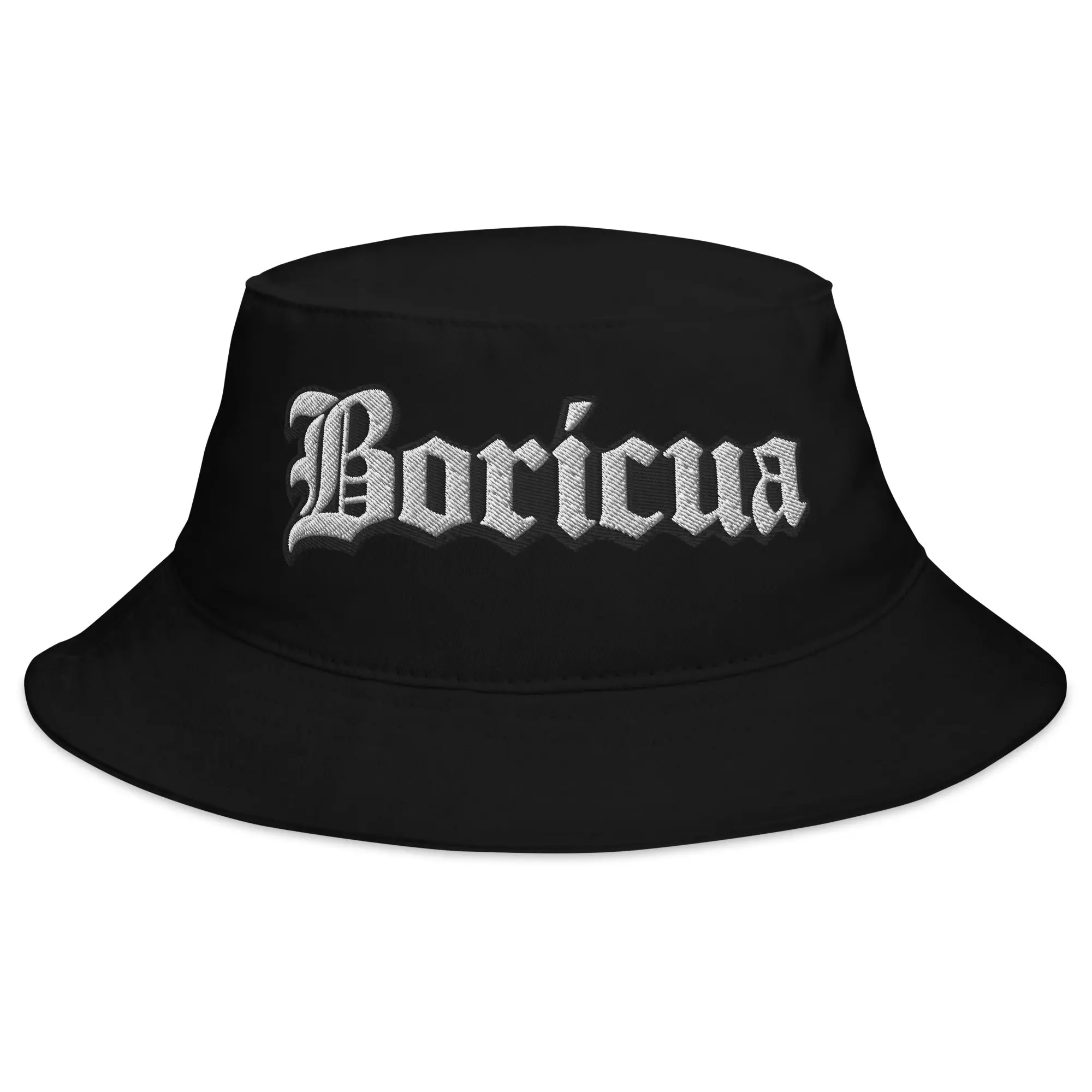 Premium Embroidery: High-contrast "Boricua" script in a timeless Old English font.