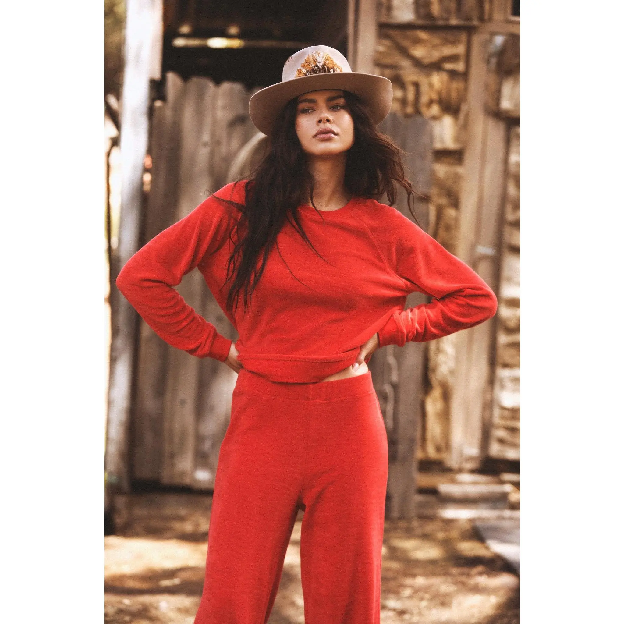 Saddle up in softness. This fuzzy terry sweatshirt feels like cloud cover and fits like a dream. Ribbed edges keep it classic, the vibe keeps it cool.