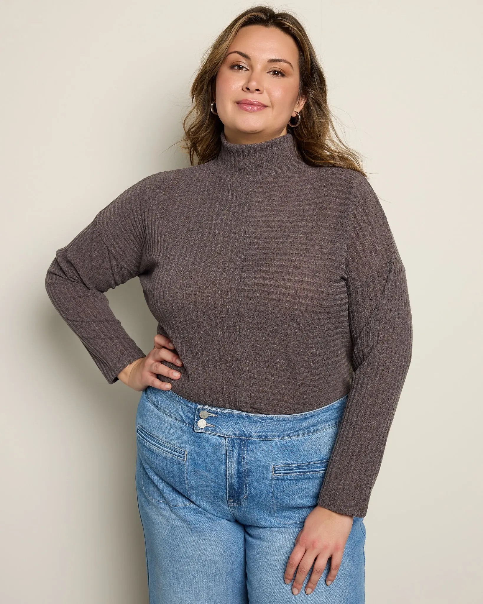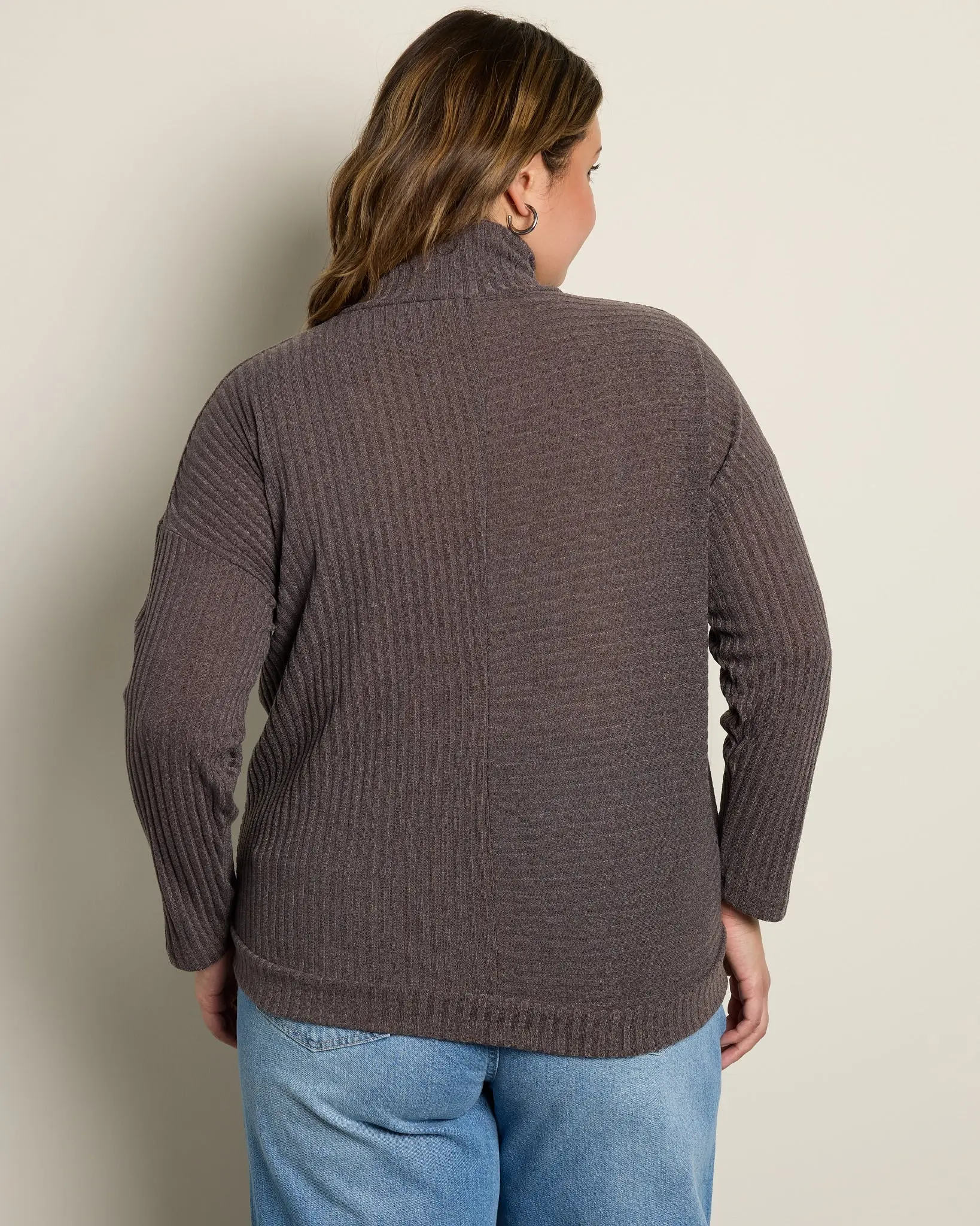 This turtleneck sweater is like getting a snuggly hug! Made from panels of an ultra-soft ribbed knit for a slim and stretchy fit. Tucks smoothly into your favorite trousers for a work day — or wine night.