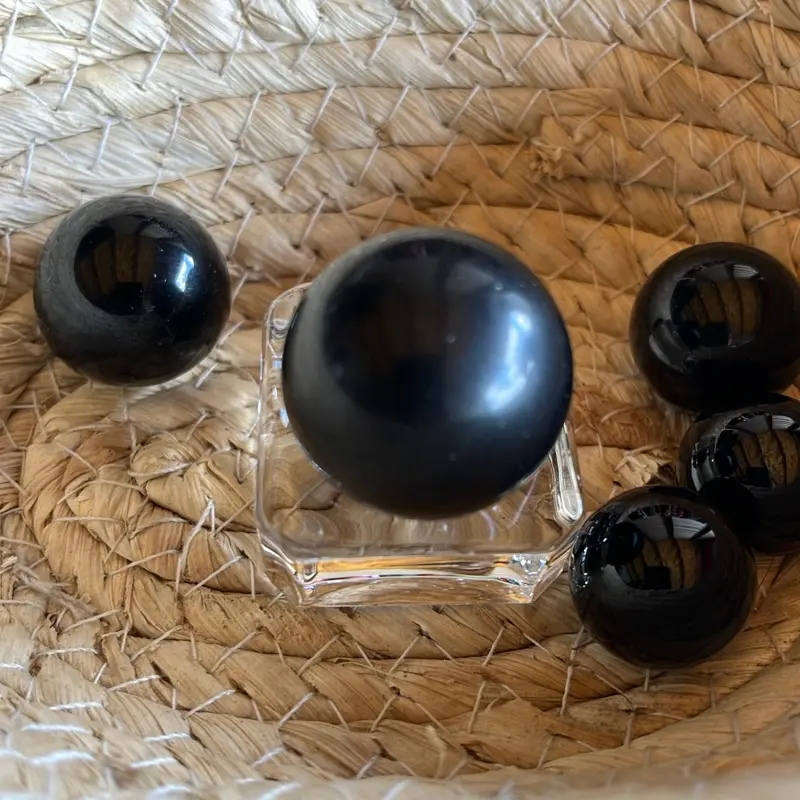 ๐ Black Obsidian Mini Sphere - Natural Smooth, Glossy, Perfect for Home or Office