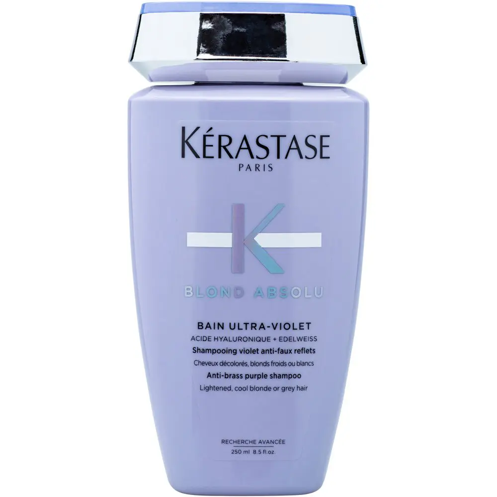 Blond Absolu Bain UltraViolet AntiBrass Purple Shampoo cleanses hair while effectively neutralizing brassy tones. This targeted formula strengthens and repairs the surface, making it ideal for damaged blonde hair. Infused with Hyaluronic Acid, it deeply hydrates and boosts shine, leaving hair soft and vibrant. Perfect for maintaining cool blonde shades, it helps prevent breakage and enhances color luminosity for illuminated, radiant locks.