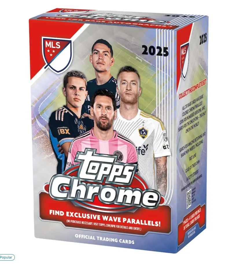 Topps Chrome Major League Soccer 2025 has arrived, bringing the biggest stars of MLS onto the stunning Chrome design. Featuring the best MLS players in the 2025 season, including established stars and young phenoms, as well as the most iconic names to grace the MLS pitch. Collect all 200 Base Cards, including first-time rookies, current key players, and legends of the past. Find one sequentially numbered Mini Diamonds parallel and four exclusive Ray Wave parallels per box!