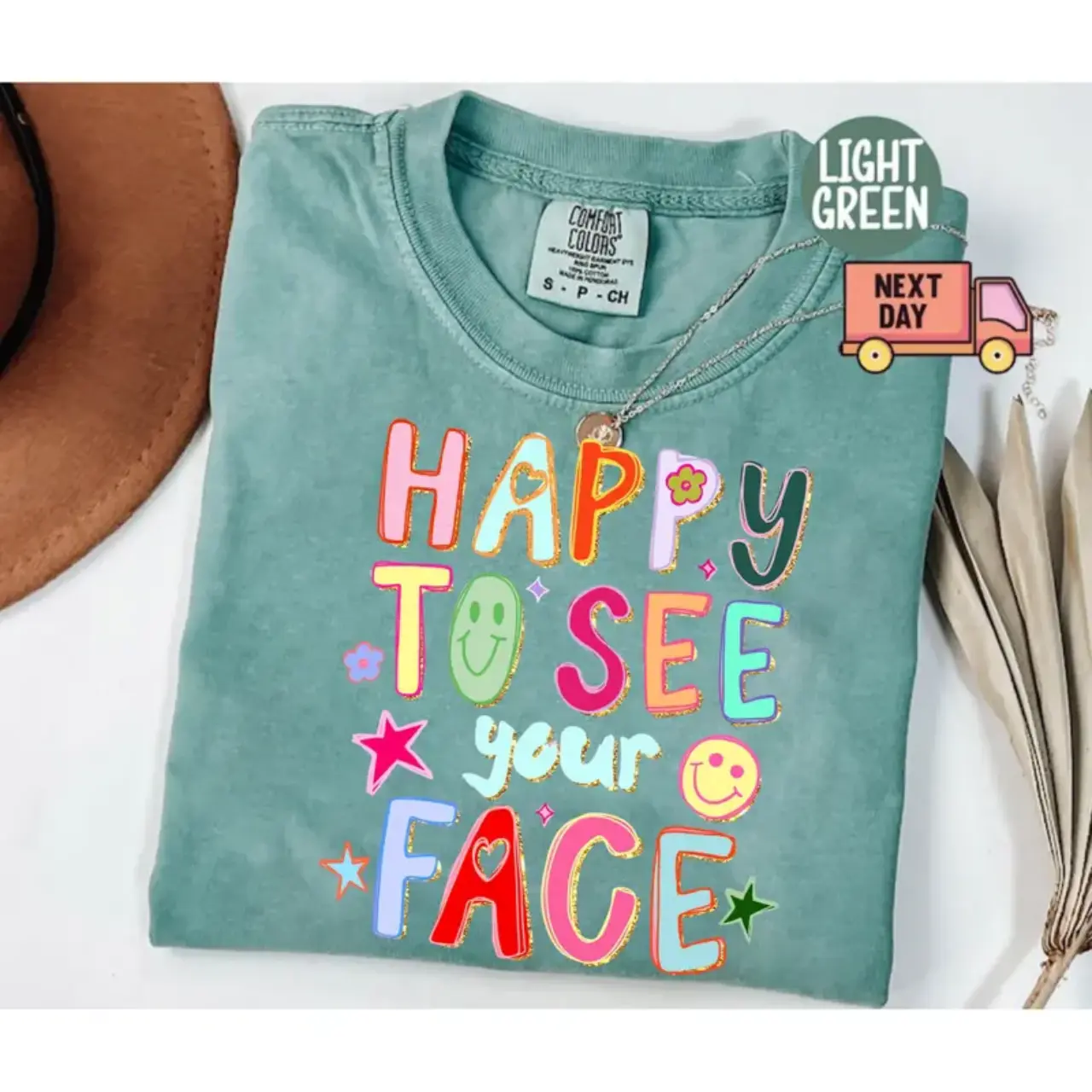 Happy To See Your Face Teacher Comfort Colors T-Shirt - Hand Drawn Colorful Doodle Stars Messy Glitter Teacher T-shirt Appreciation Gift Tee