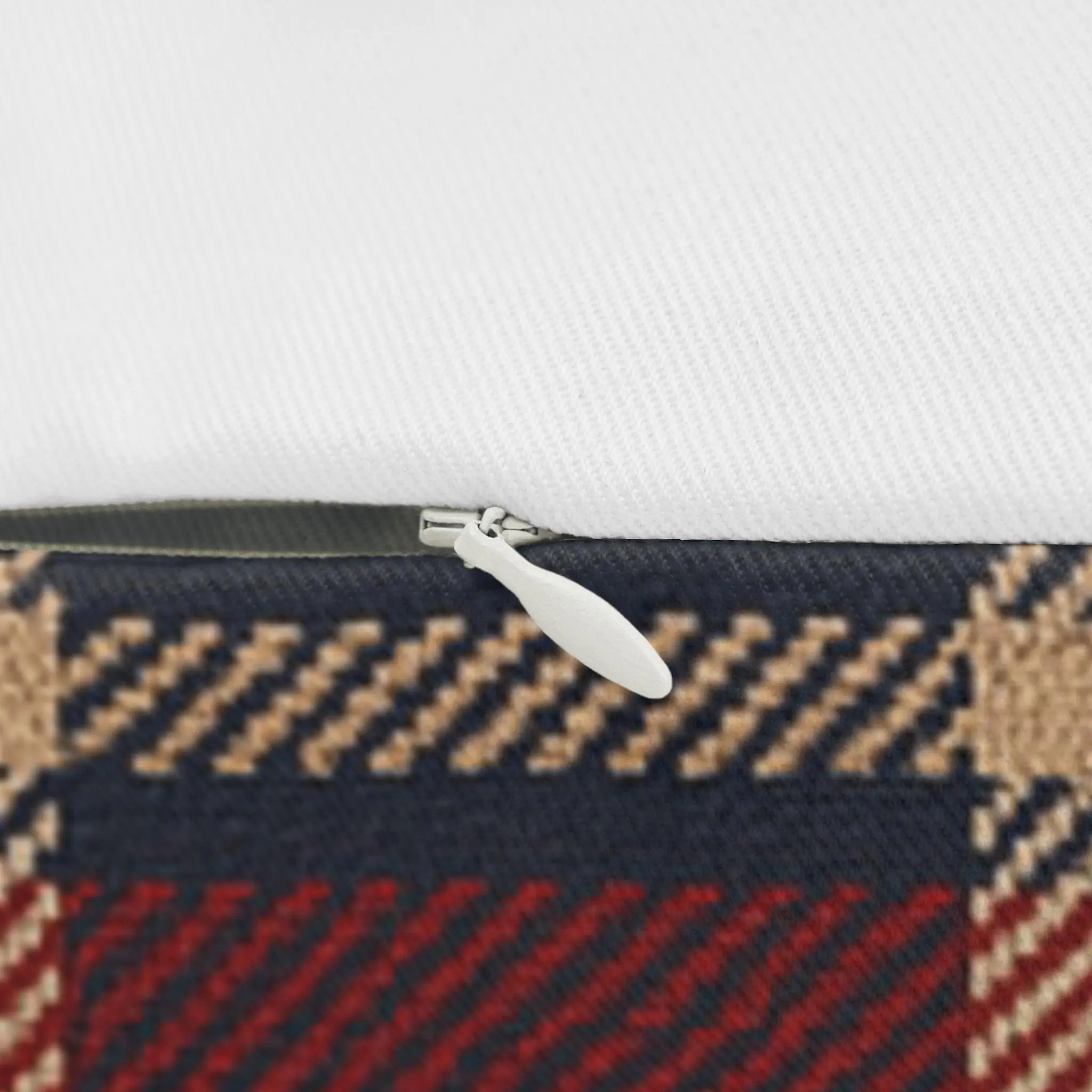 - Beige concealed zipper with metal pull for a seamless finish