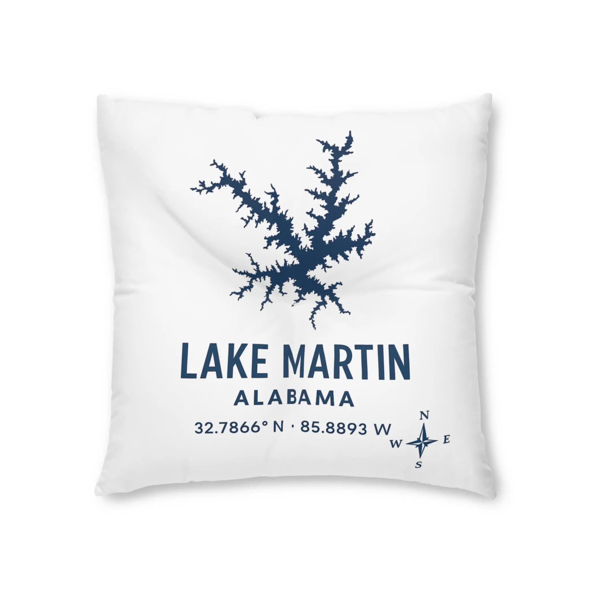 Lake Martin Lakehouse Floor Pillow, Square Tufted Accent Cushion | Lake Decor
