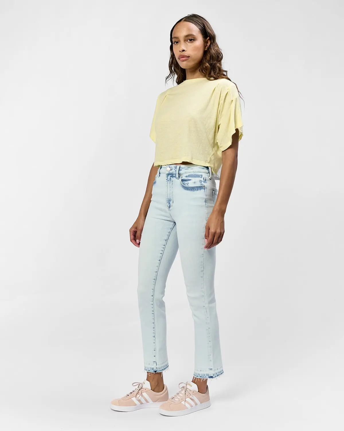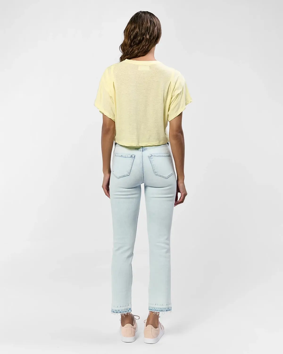 These slim straight jeans are made take you season after season! So versatile and flattering with a high-rise waist, frayed hem and contrasting wash along the seams for edge. Made of so-soft denim with a hint of comfy stretch.