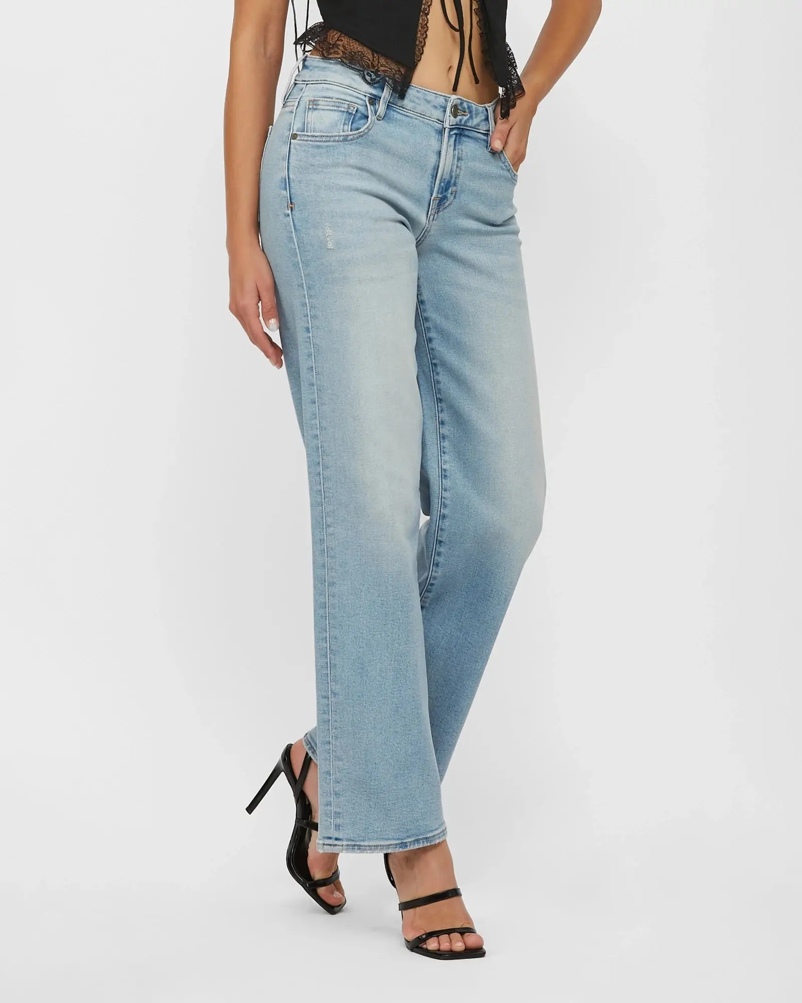 Dad jeans are in and this pair brings together a mid-rise waist and wide leg silhouette to complement your weekend favorites. So durable and comfy in cotton denim with a touch of stretch.