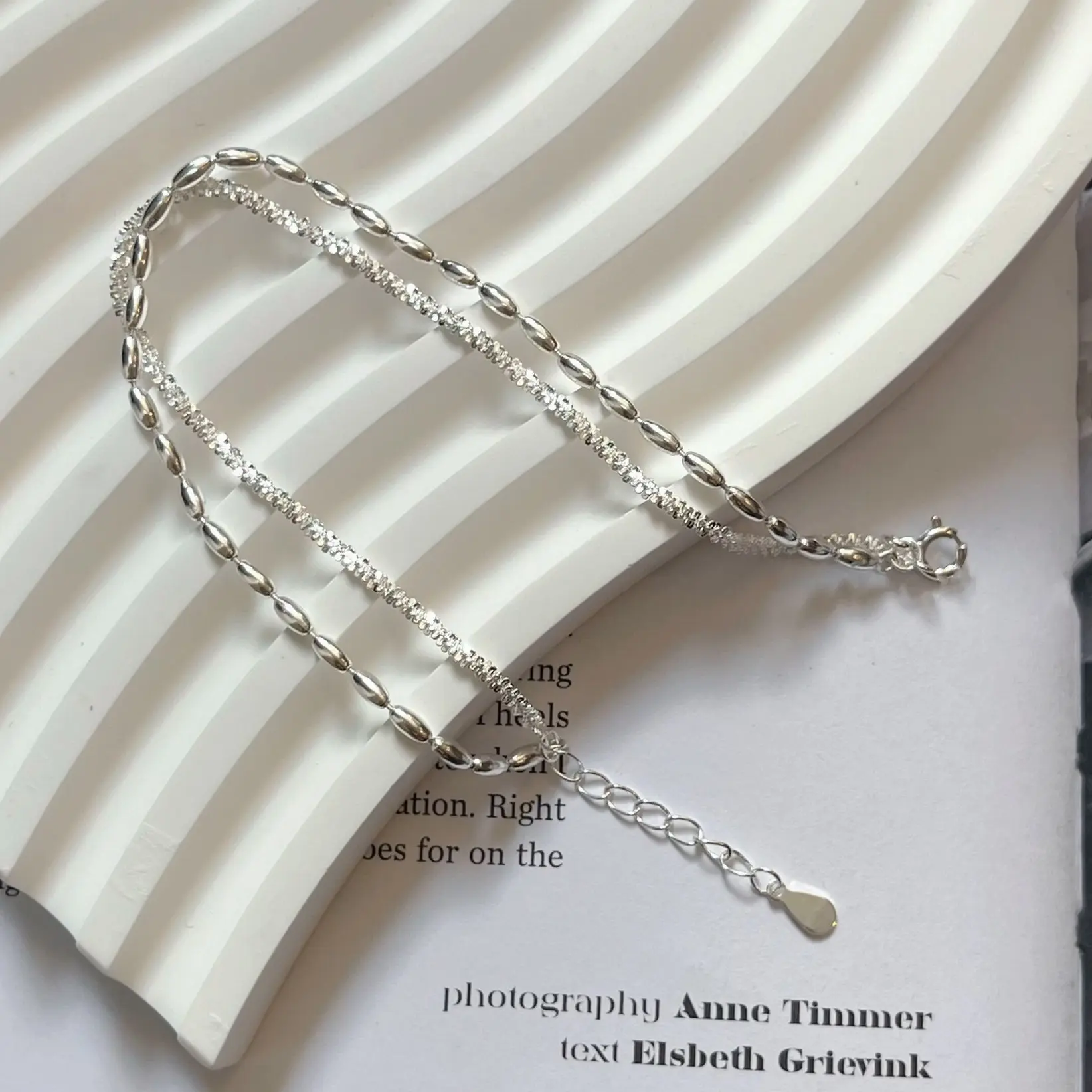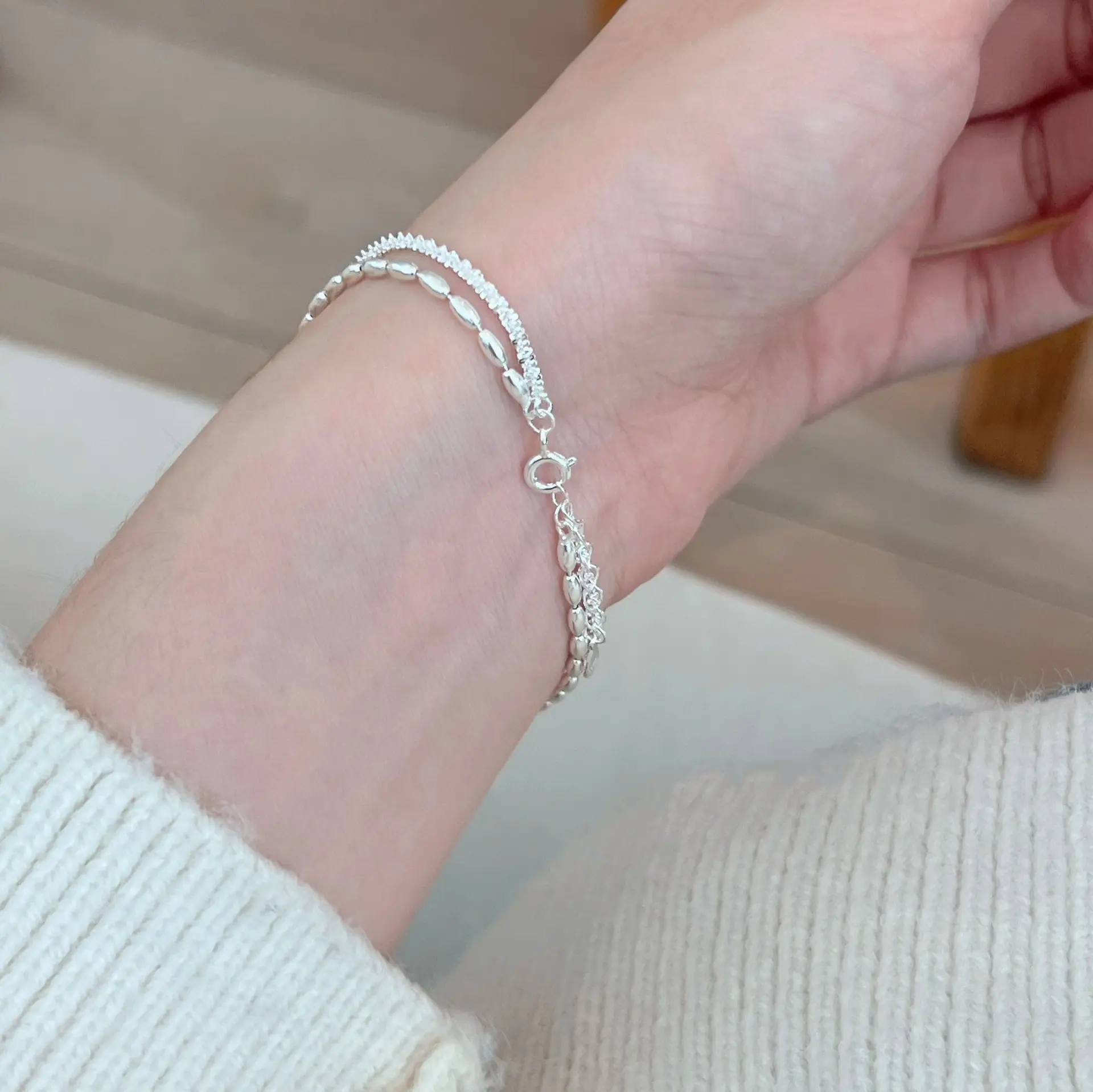 This double-layer starry beads bracelet adds a delicate and elegant touch to your daily look. The layered silver-tone chain creates a light and stylish shine that is easy to pair with different outfits and occasions.