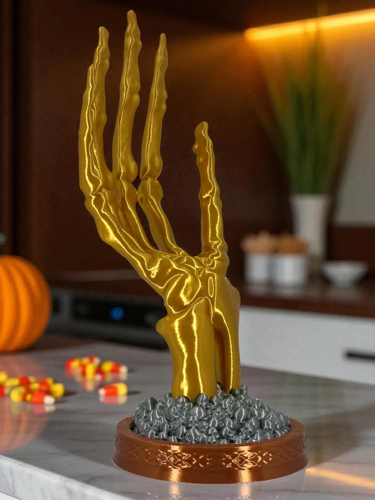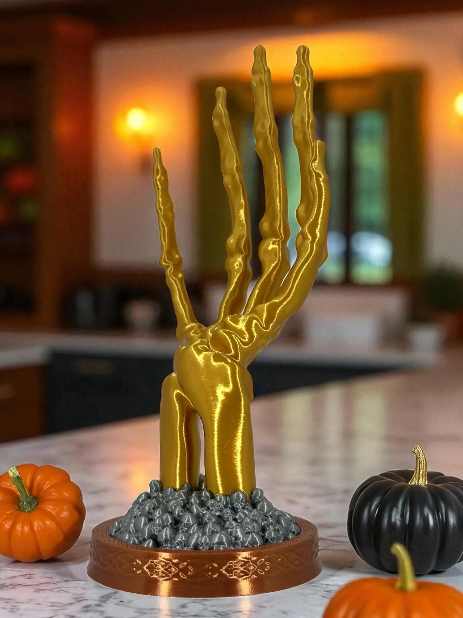 🍰 Glossy gold finish that pops on dark academia and Halloween setups