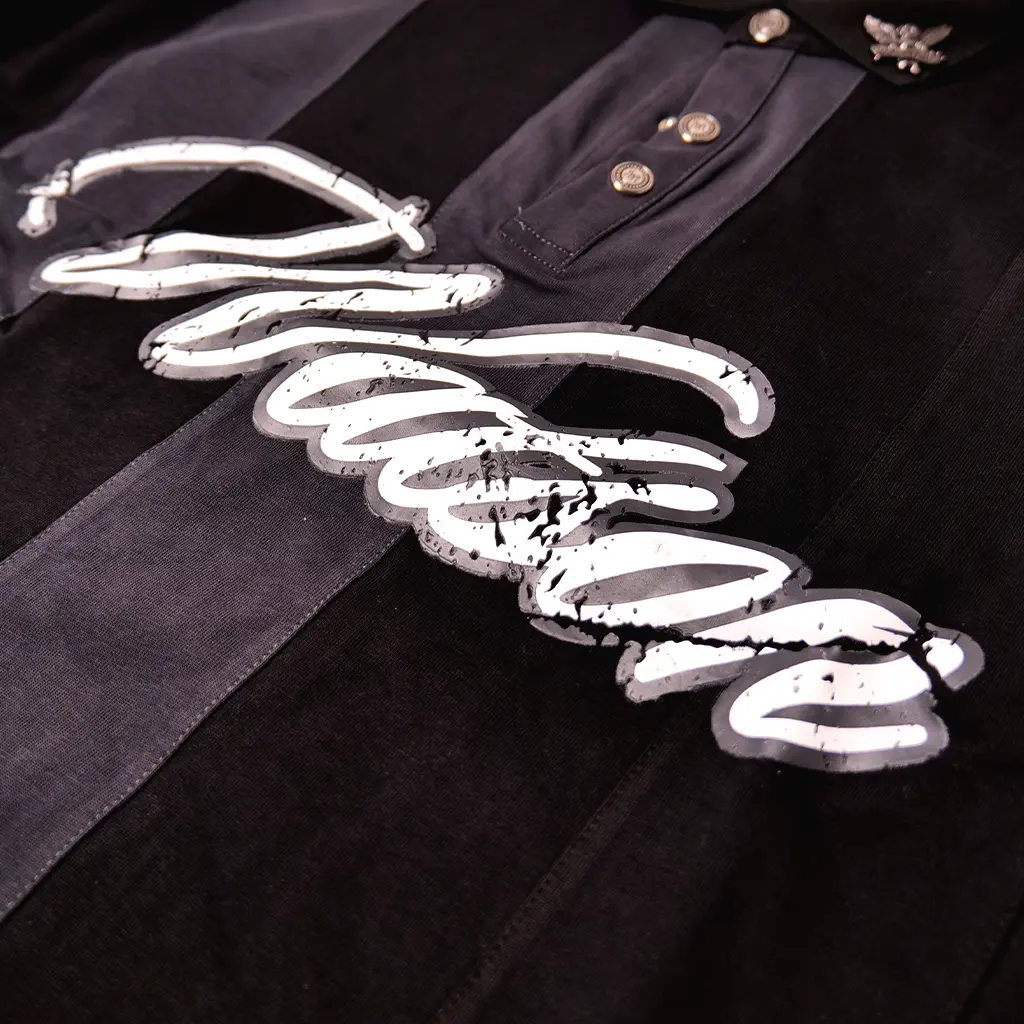 Refined embellishments along the collar add a distinctive edge, while custom heavy metal Watson tags reinforce the garment’s elevated construction. Snap-button closure replaces traditional buttons for a modern, utility-inspired finish.