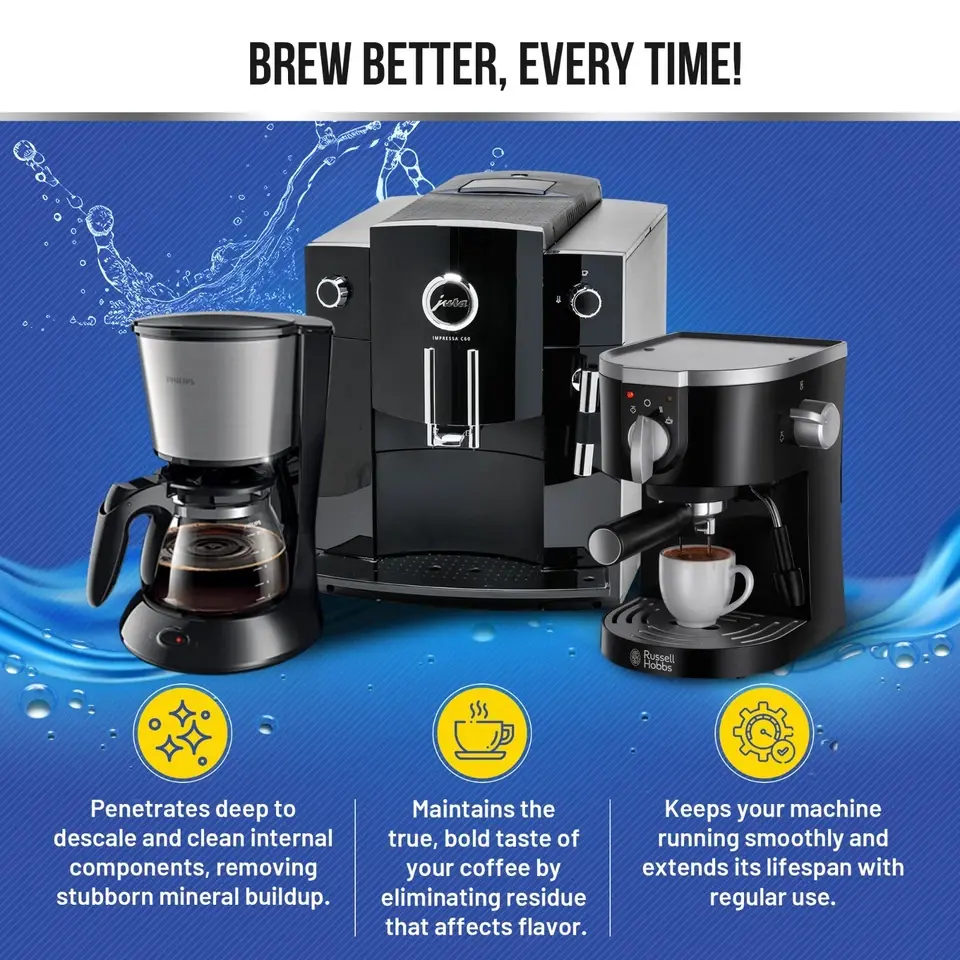 Stay consistent with your coffee machine's performance. Use these tablets to keep your brewing experience at its best. No more worries about buildup or inefficiency.