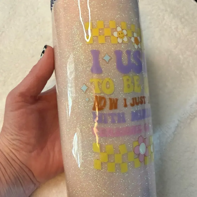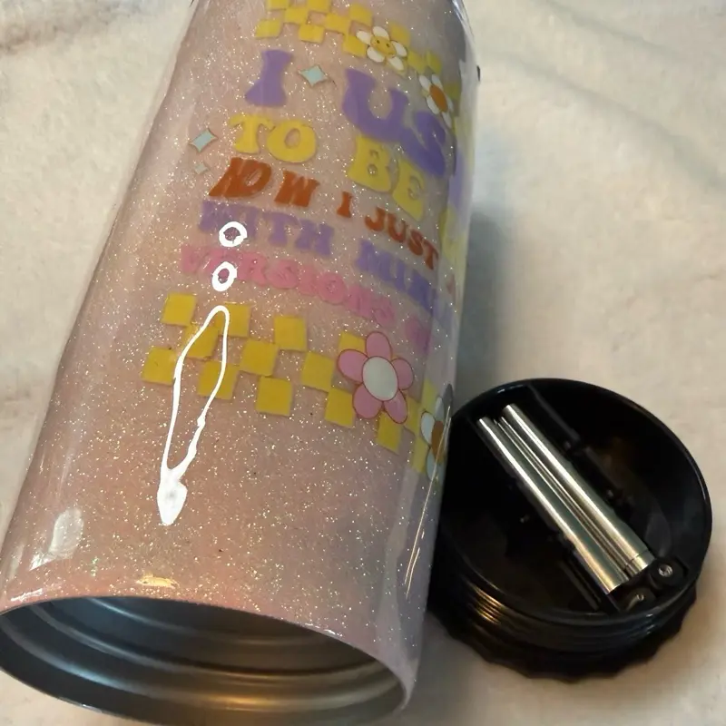 This 20 oz epoxy tumbler is a unique addition to your collection. It features a metal foldable straw nestled at the bottom, adding convenience to your drink. The design is both functional and quirky, making it a standout piece. Perfect for those who appreciate a touch of humor in their everyday items.