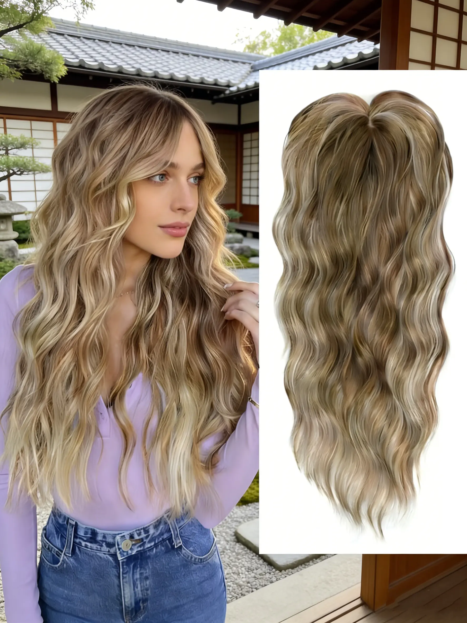 5. ✨ Transform Your Look Instantly! This Blonde Wavy Hair Topper with Bangs Adds Volume & Length Effortlessly, Perfect for Daily Wear & Special Occasions, 100% Natural & Undetectable!