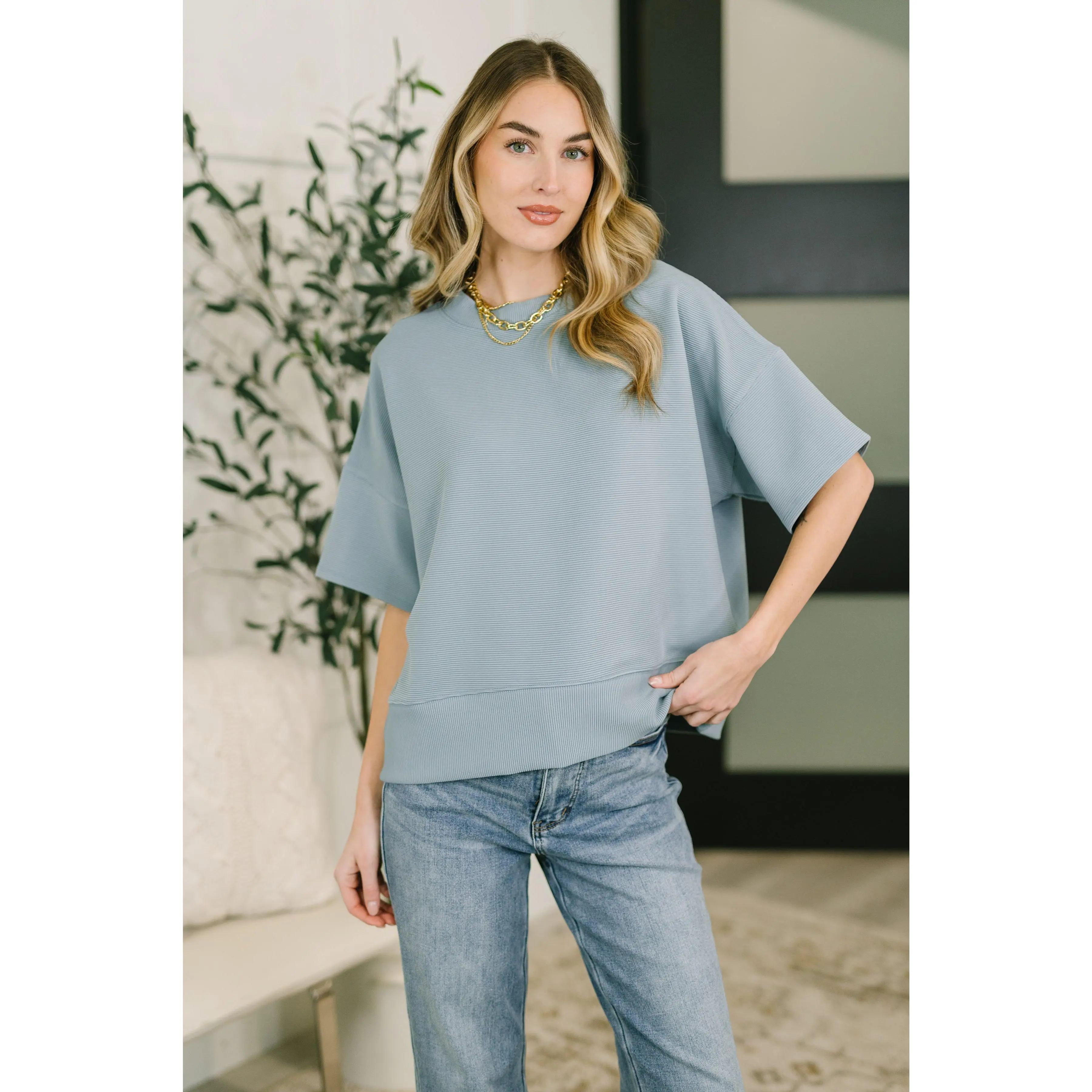 The Sense of Clarity Boxy Top is your new go-to for laid-back style that actually works. Crafted from stretchy ribbed knit, this top moves with you all day long. The drop shoulder cut and boxy silhouette deliver that effortlessly cool aesthetic, while the ribbed round neckline and banded hem add just enough structure to keep things looking intentional. Throw it on with jeans, layer it under a jacket, or pair it with your favorite bottoms—this versatile piece does it all.