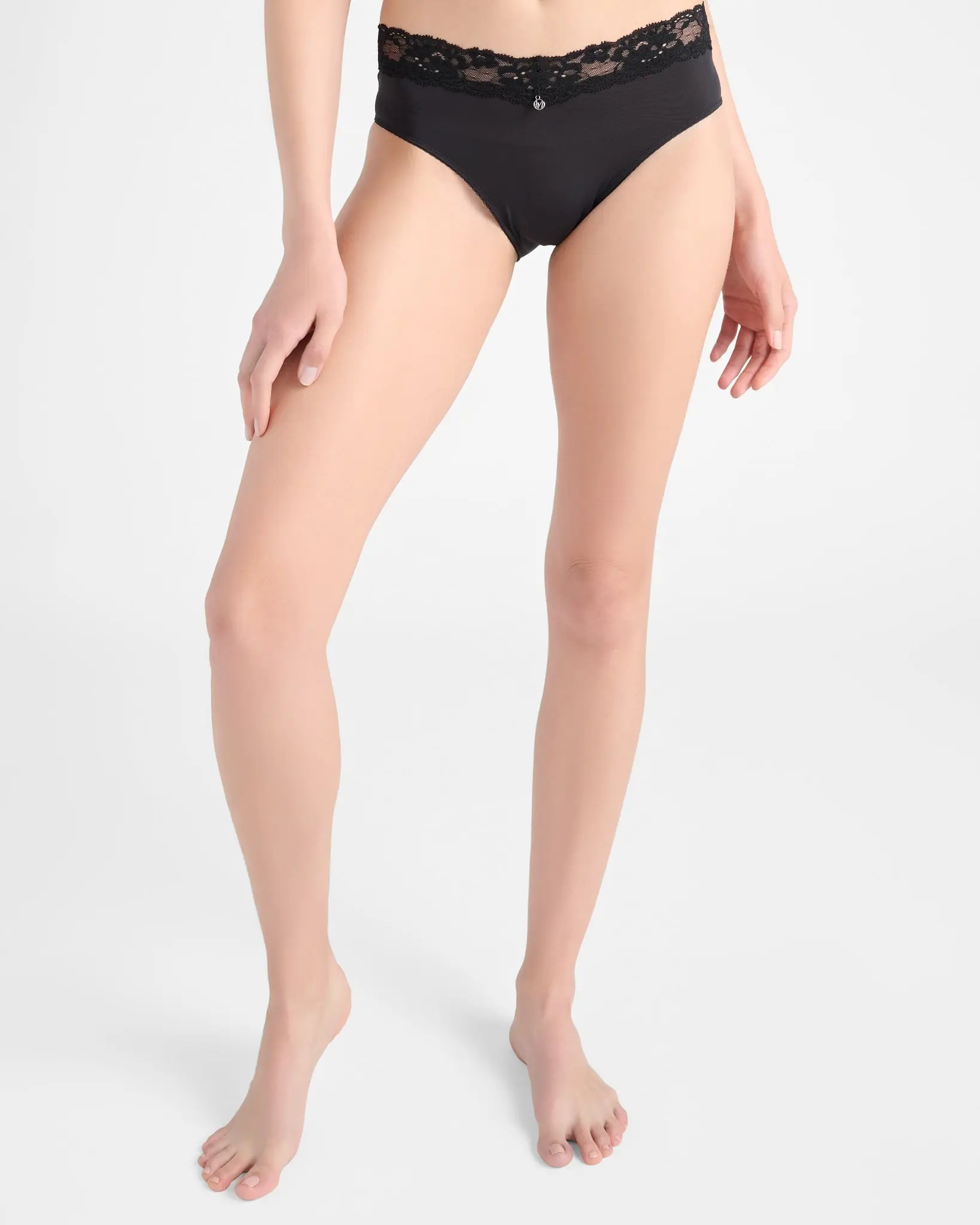 This lovely lace panty has a cozy everyday feel. This mid-rise hipster brief is made of silky-soft fabric with a lace waistband that lays flat and can't be seen through your pencil skirt.