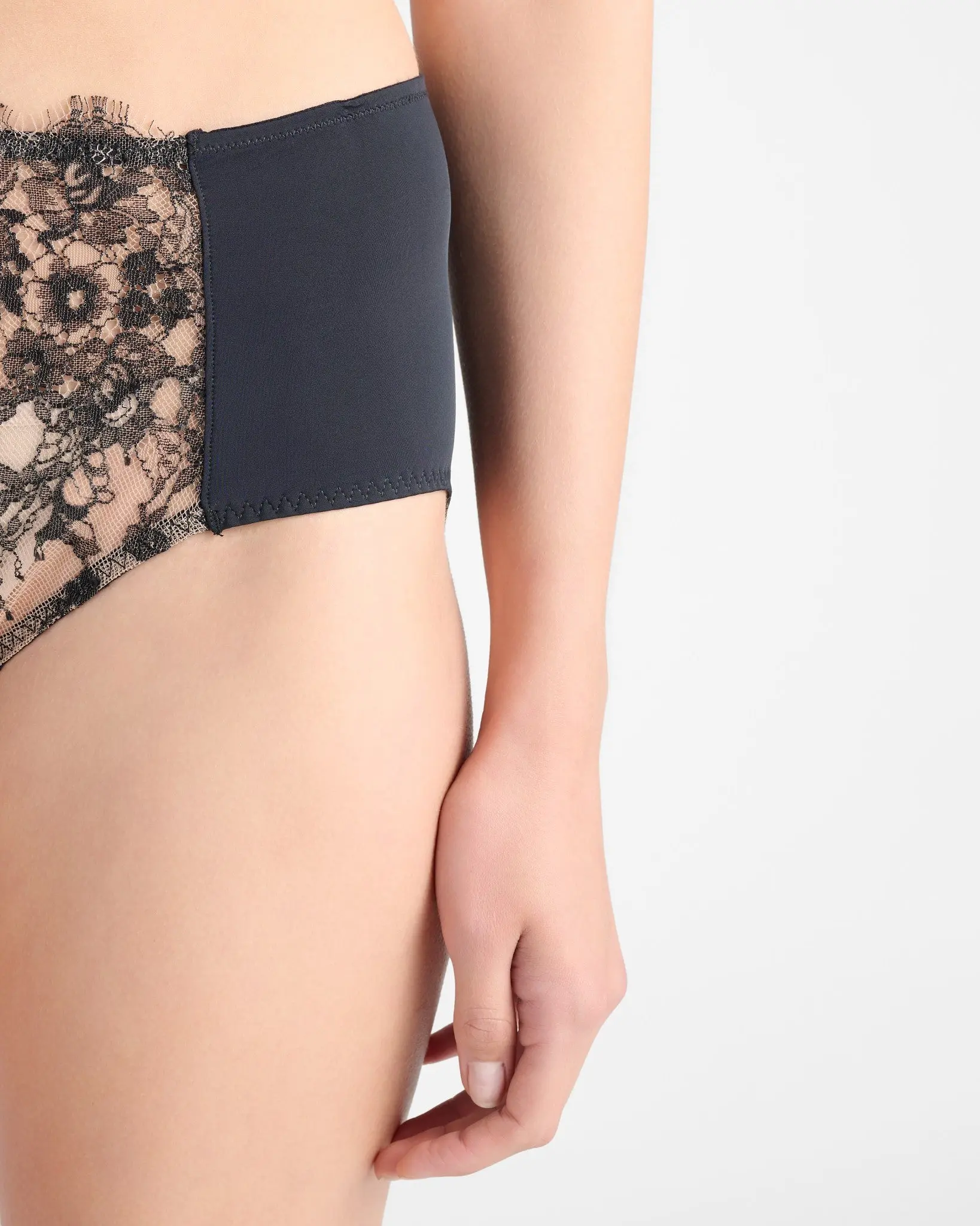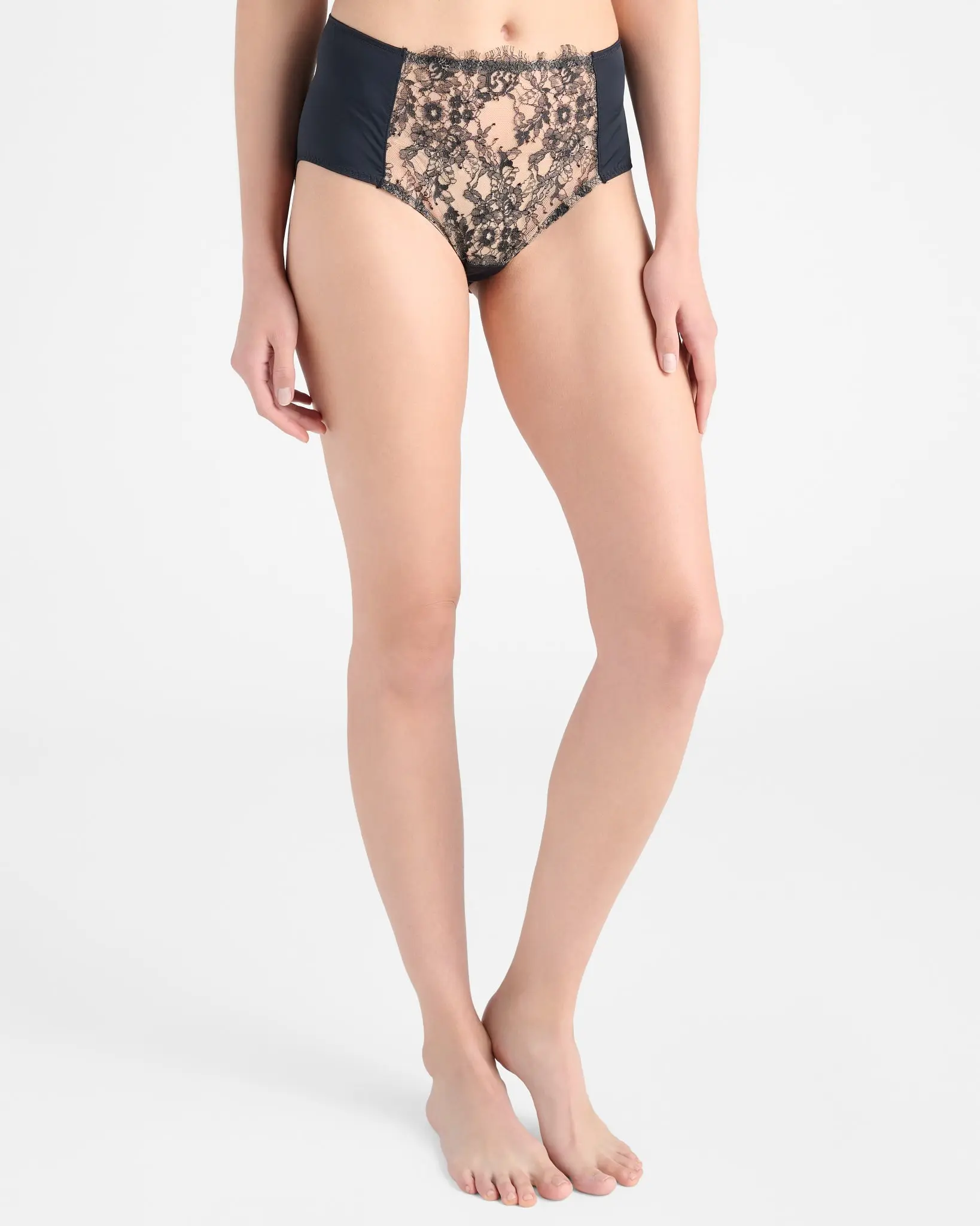 These brief panties know how to flirt! Elevated with a fabulous lace panel in the front. Midrise and full coverage.