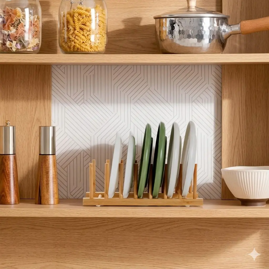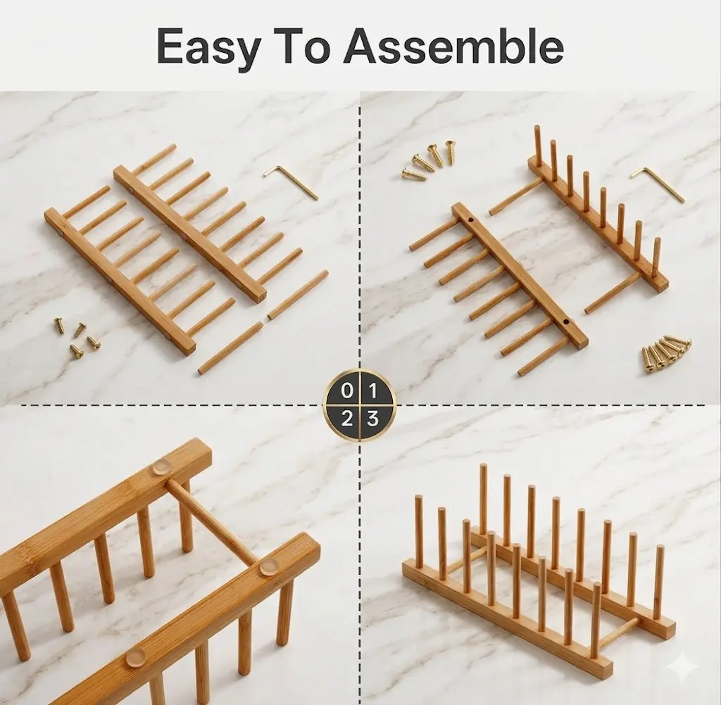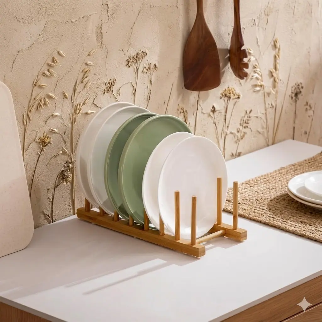 ·Premium Bamboo Material - Safe & Durable: Crafted from high-quality natural bamboo, this dish rack plate stand holder features a smooth splinter-free finish and long-lasting durability. As a renewable resource, it contains no harmful chemicals (unlike plastic dish racks), ensuring safety for food contact and your family. The natural bamboo texture adds organic elegance to any kitchen, matching modern, rustic or traditional decor styles perfectly.