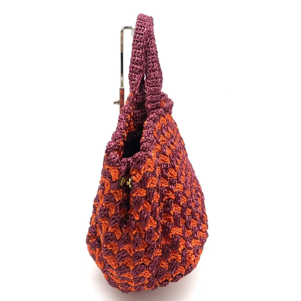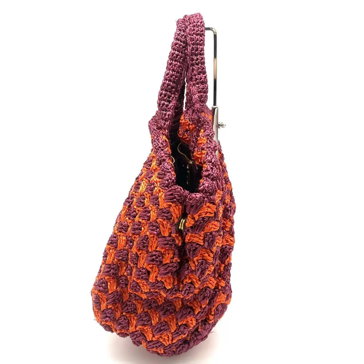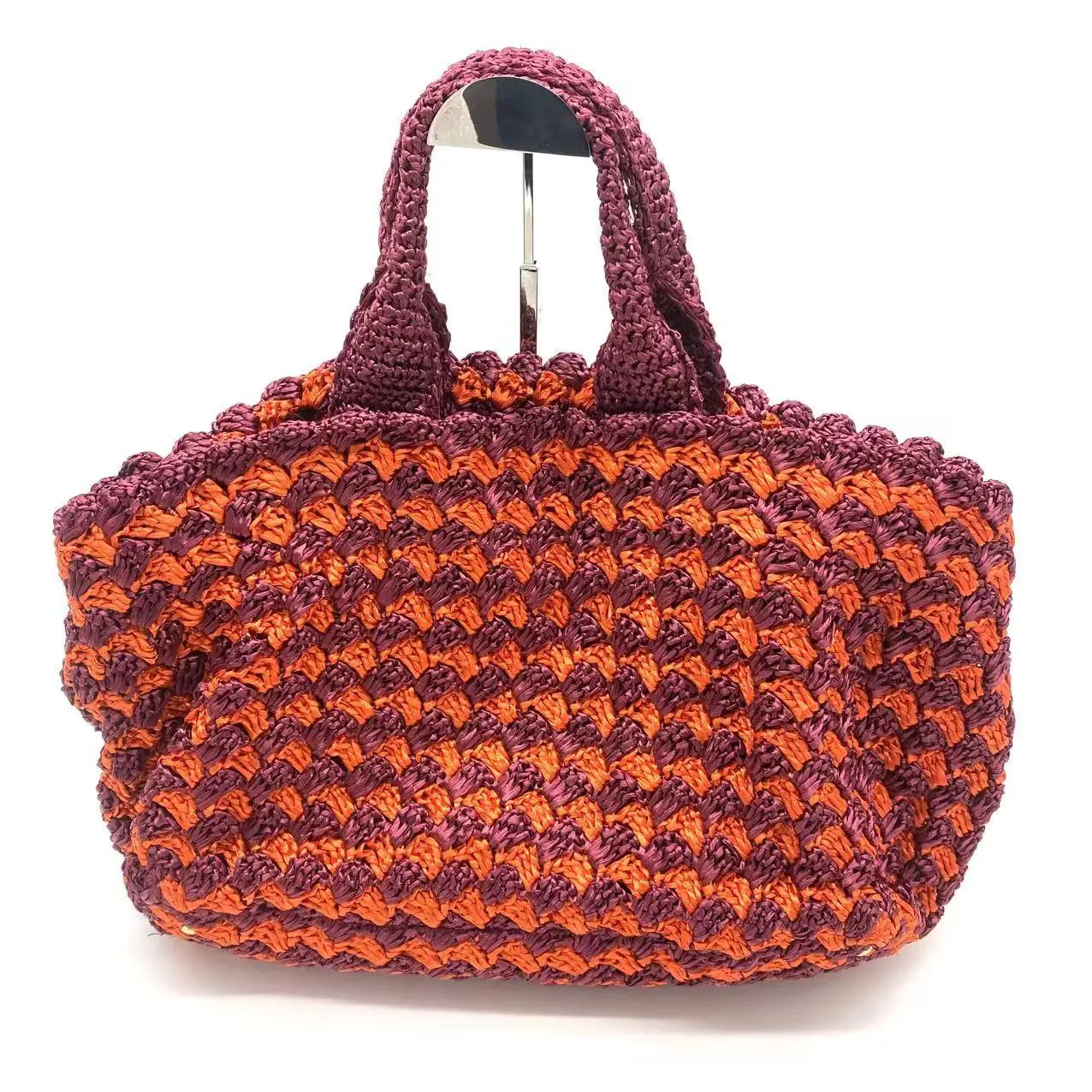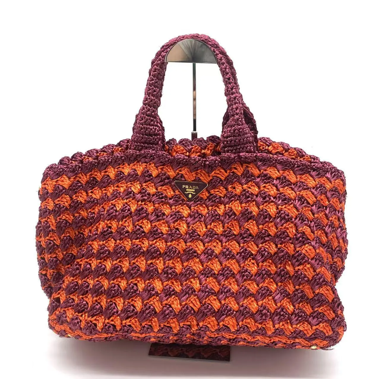 Pre-owned PRADA knit Tote Bags Raffia Big Tote Bag Orange