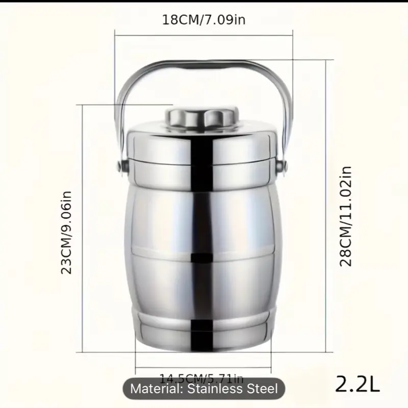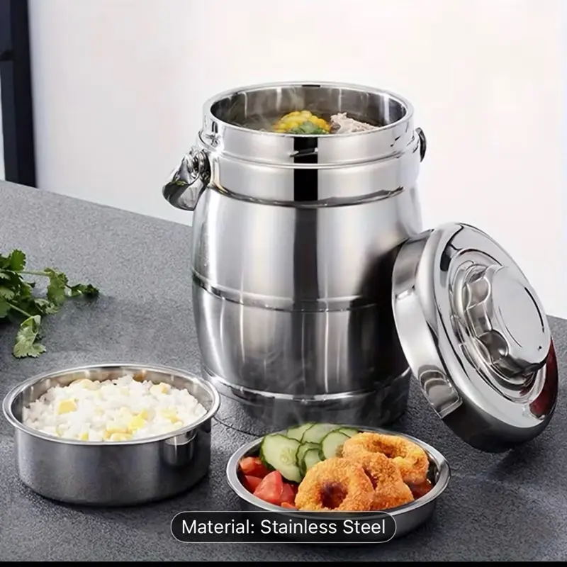 1 Stainless Steel Insulated Lunch Box - Sturdy Handle Design, Leak-Proof & Stackable - Keeps Food Hot/Cold for Hours, Ideal for Office, School, Camping, Travel - Round Easy-Clean Structure - Perfect for Meal Prep & On-the-Go Dining, Modern Lunch