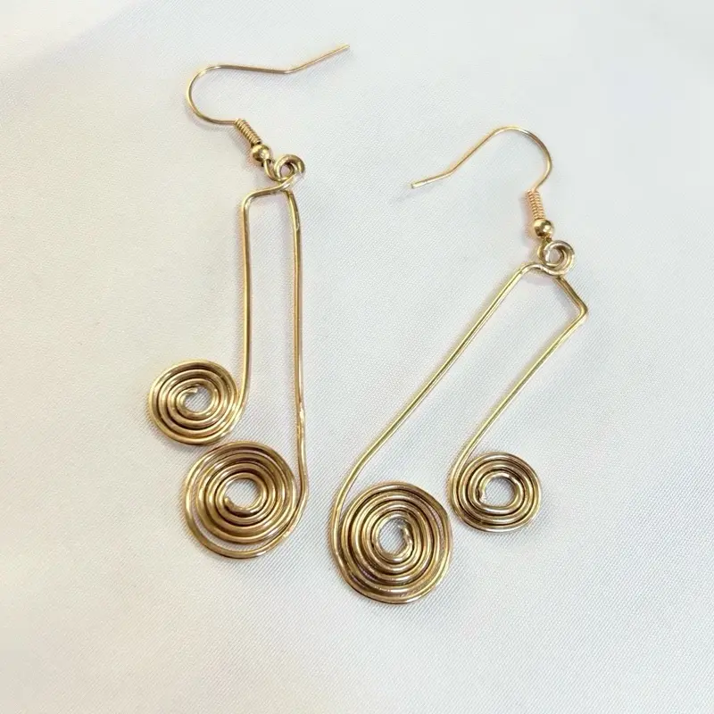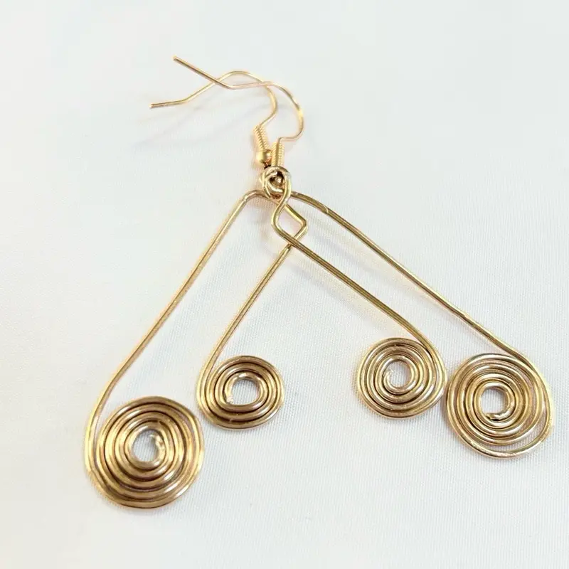 Bold yet elegant, these handcrafted earrings feature flowing gold-tone wire shaped into graceful lines, finished with delicate spiral accents that echo movement and harmony.