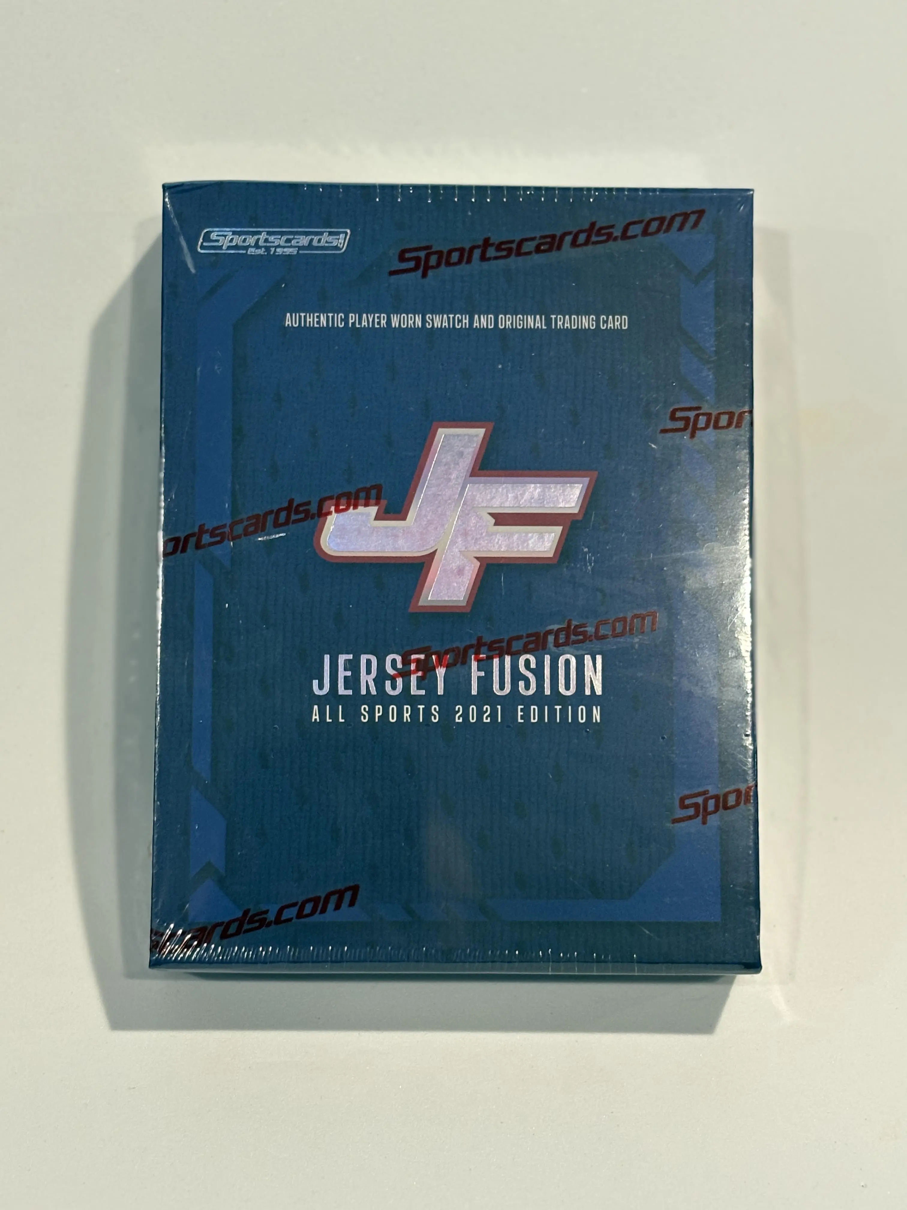 Jersey Fusion All Sports 2021 edition box. Authentic player worn swatch and original trading card inside! Every Jersey Fusion box contains 1 sealed acrylic holder with material worn by the player depicted on the accompanied original trading card. Each swatch originated from a player worn item that was created by a third-party authenticator.
