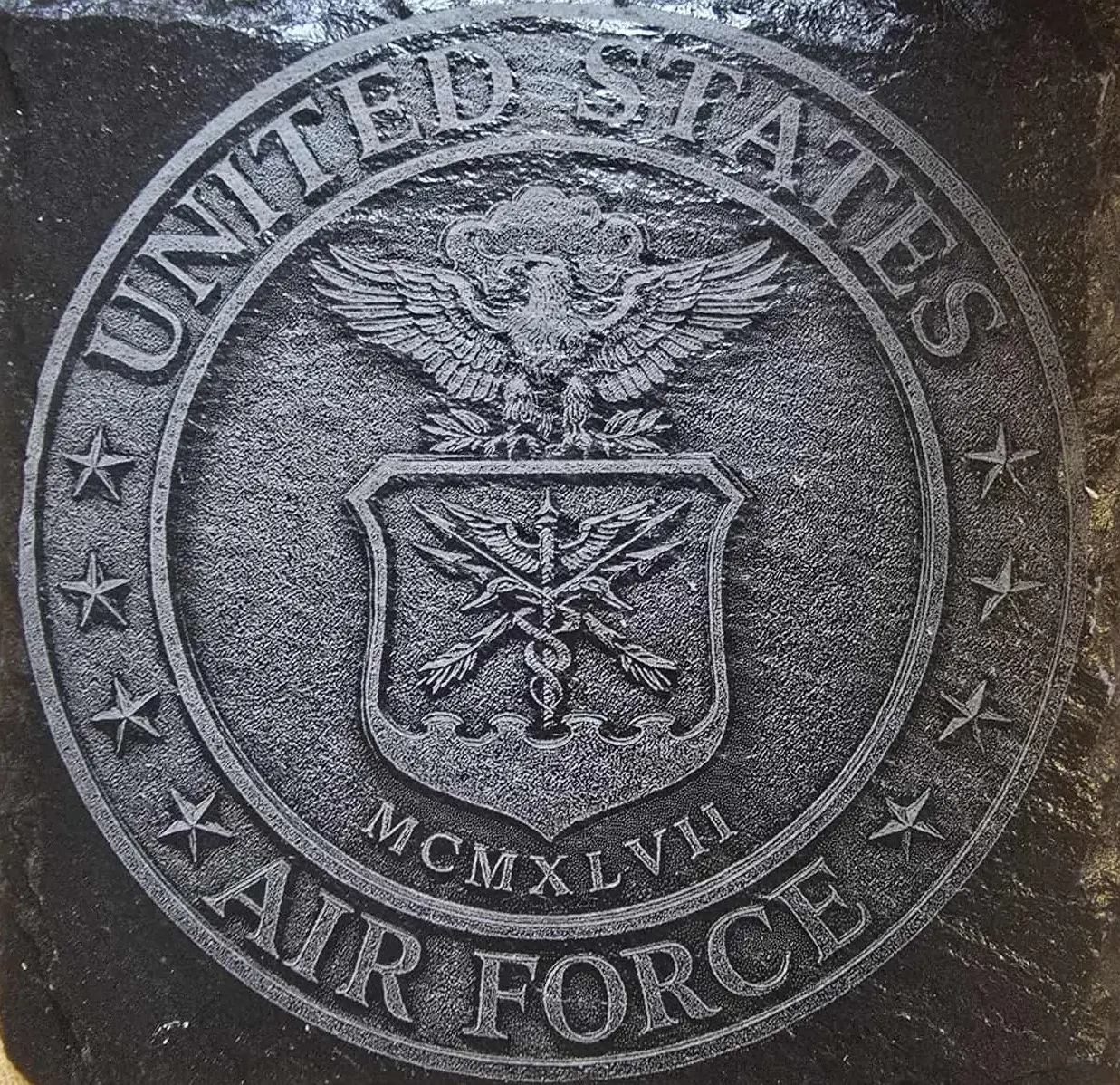 United States Air Force Coaster Slate Laser engraved. Each coaster is sealed. The smooth black stone texture adds a touch of luxury to any setting, making these coasters not just functional, but also a stylish addition to your décor. Perfect for use in your home, office, or anywhere you want to add a touch of elegance. The use of natural stone gives our black stone coasters a distinctive appearance but also provides durability and resistance to wear, ensuring they withstand long-term use without easily getting damaged. The natural stone possesses excellent heat conductivity, effectively protecting your tabletops from the impact of hot cups or cold beverages. Each Coaster is equipped with 4 non-slip pads on the bottom. This means they provide a secure grip on any surface, preventing any potential scratches or damage to your furniture. Enjoy your drinks without worrying about the safety of your surfaces. A perfect gift for any occasion. Be it birthdays, housewarming parties, weddings, anniversaries, or any other special event, these coasters are sure to be a hit. With their unique design you can give a gift that is not only practical but also personal and thoughtful. We laser engrave each coaster here in the United States. Special gift for anyone who loves or collects Big Foot