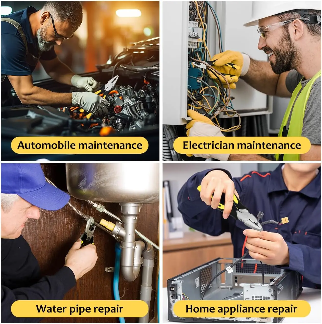 ·Lineman’s pliers body is made of high-quality carbon steel. The handle is TPR, eco-friendly. The pliers are well-made, with a neat mouth and comfortable, non-slip handle. The blade is sharp and durable, offering stronger shear force and longer service life.