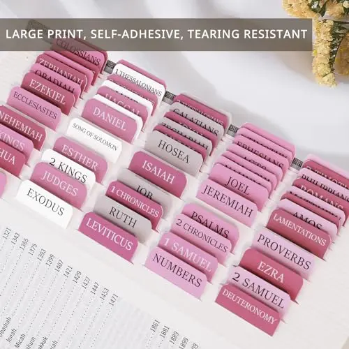 Pink Bible Tabs for Women & Men, Laminated Bible Tabs for Study Bible, Boho Theme Bible Tabs for Easy Navigation, Simplify Your Bible Reading Experience with Easy-to-Use Indexing Tabs