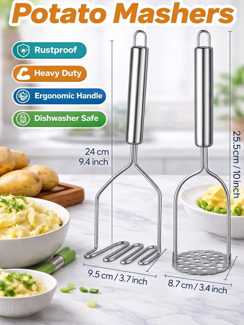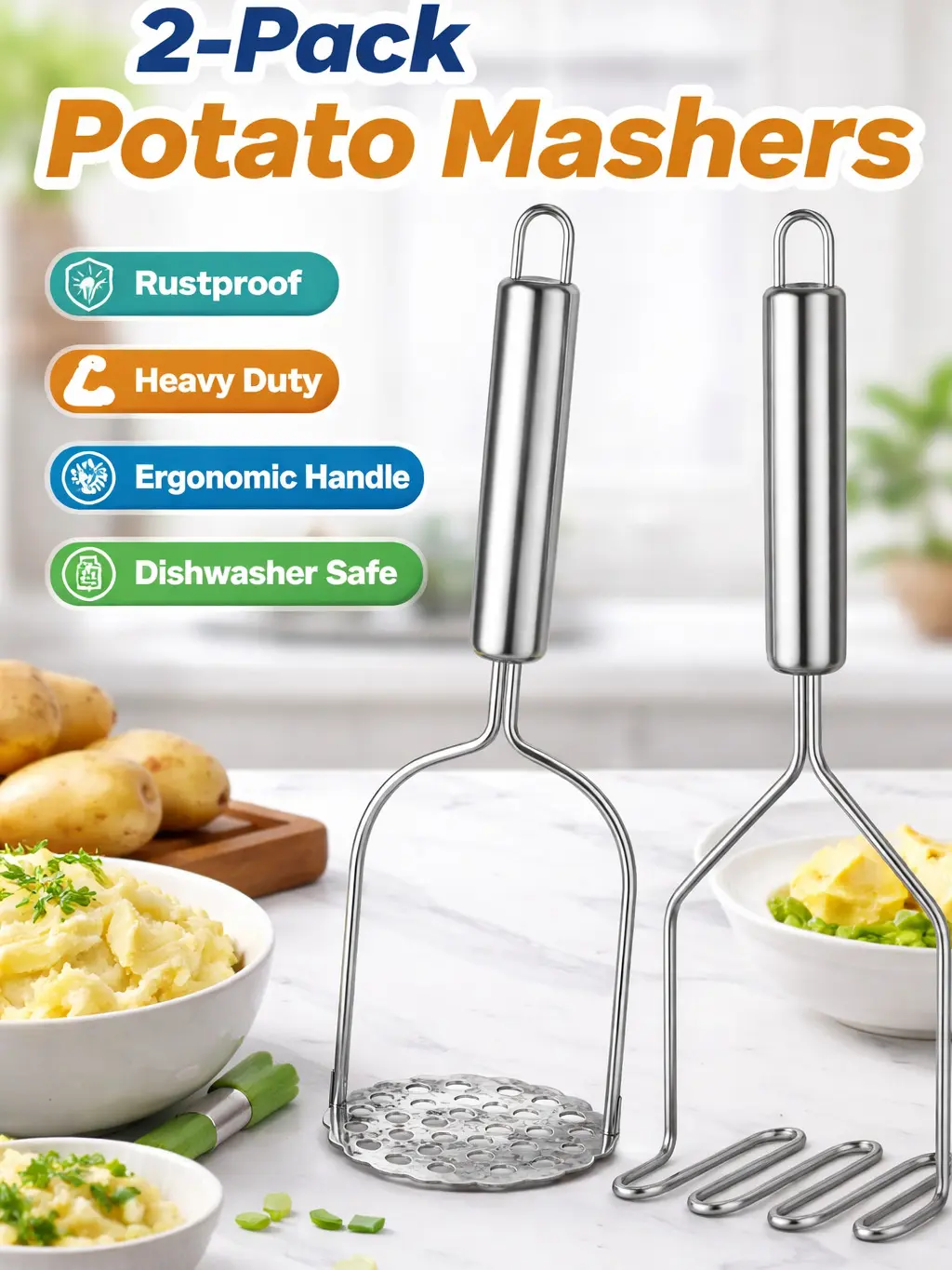 Make meal prep faster, easier, and smoother with this 2PCS Stainless Steel Potato Masher Set. Designed for everyday cooking, this durable masher set helps you create perfectly mashed potatoes, creamy avocado, and evenly blended ingredients in seconds.