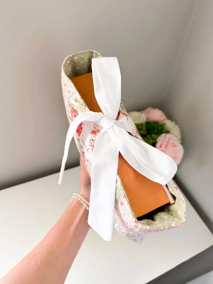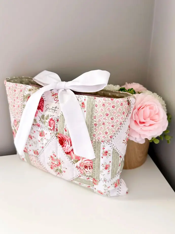 Rose Patchwork Quilted Bible Sleeve Bag with Bow Detail | Bible Cover