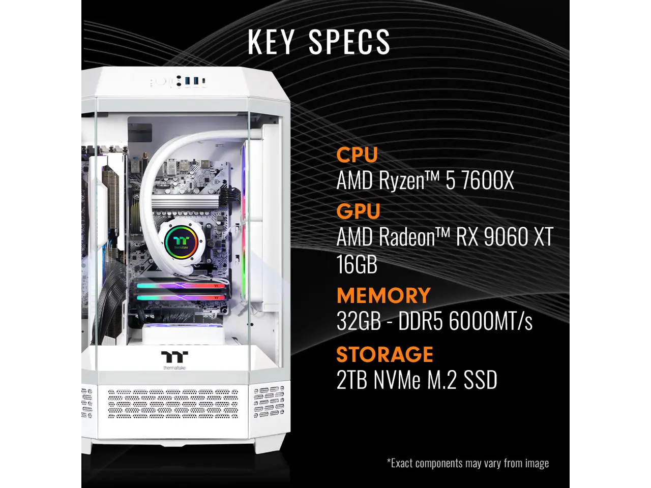 Thermaltake Gaming Desktop PC T3WT-B650-96X-LCS AMD Ryzen 5 7600X 32GB DDR5 2TB NVMe SSD AMD Radeon RX 9060 XT Windows 11 Home