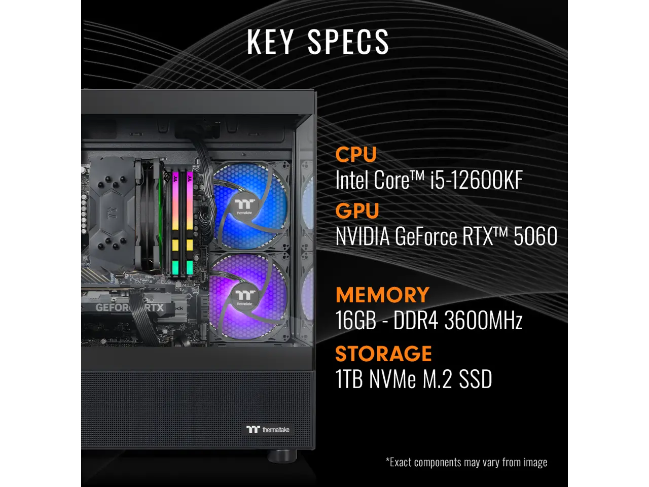 Thermaltake Gaming Desktop PC V17B-B76R-560-LCS Intel Core i5-12600KF 16GB DDR4 1TB NVMe SSD GeForce RTX 5060 Windows 11 Home