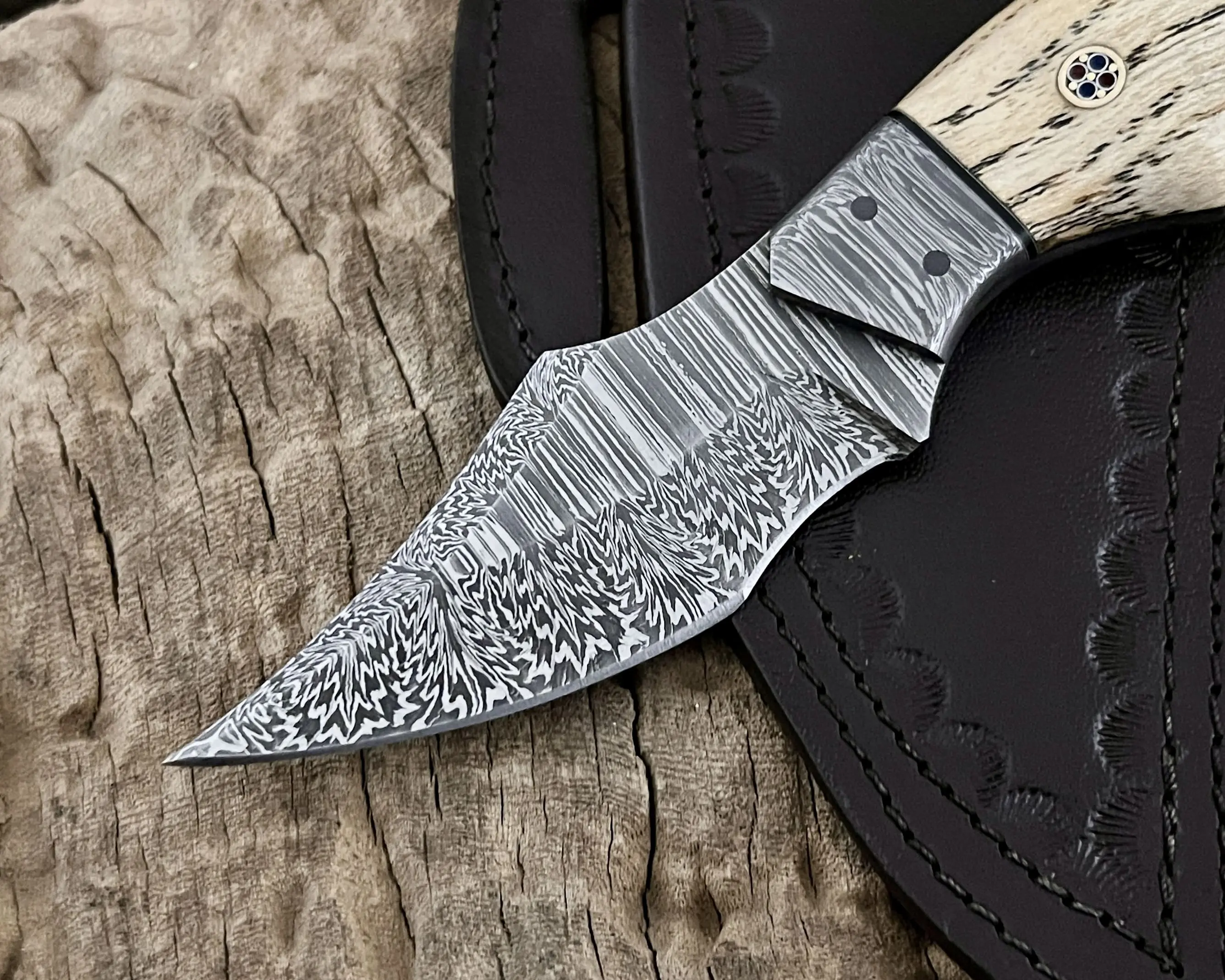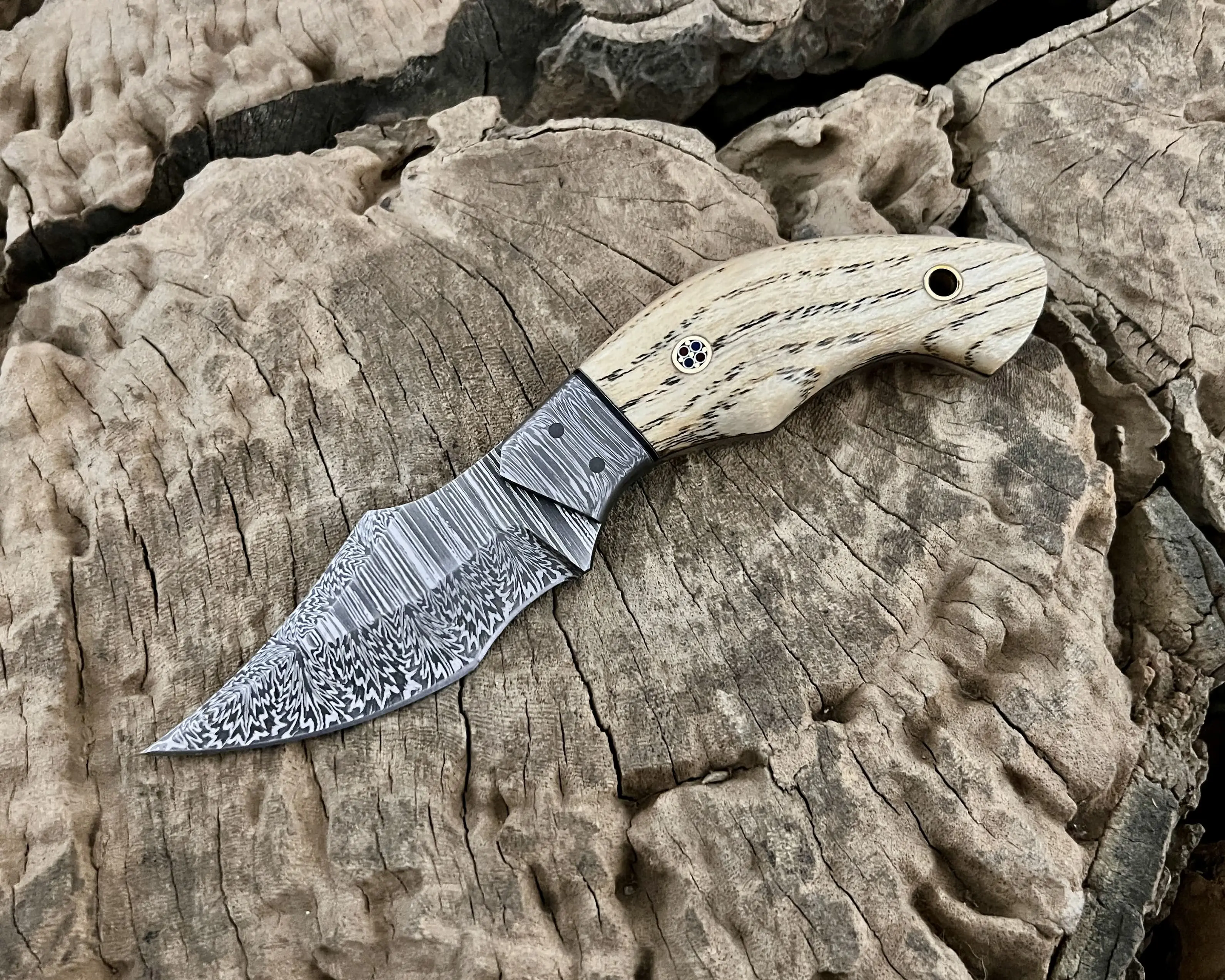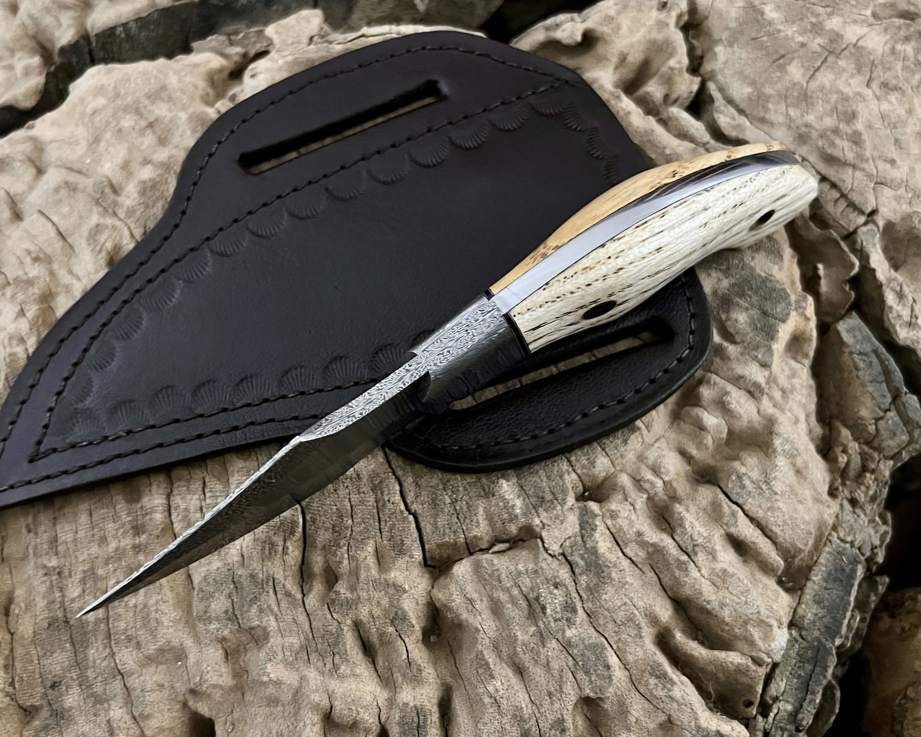 Experience true craftsmanship with this hand-forged Damascus steel knife, designed for hunters, campers, and outdoor enthusiasts. Each piece is a unique blend of functionality, durability, and artistry, making it not only a reliable tool but also a collectible showpiece.