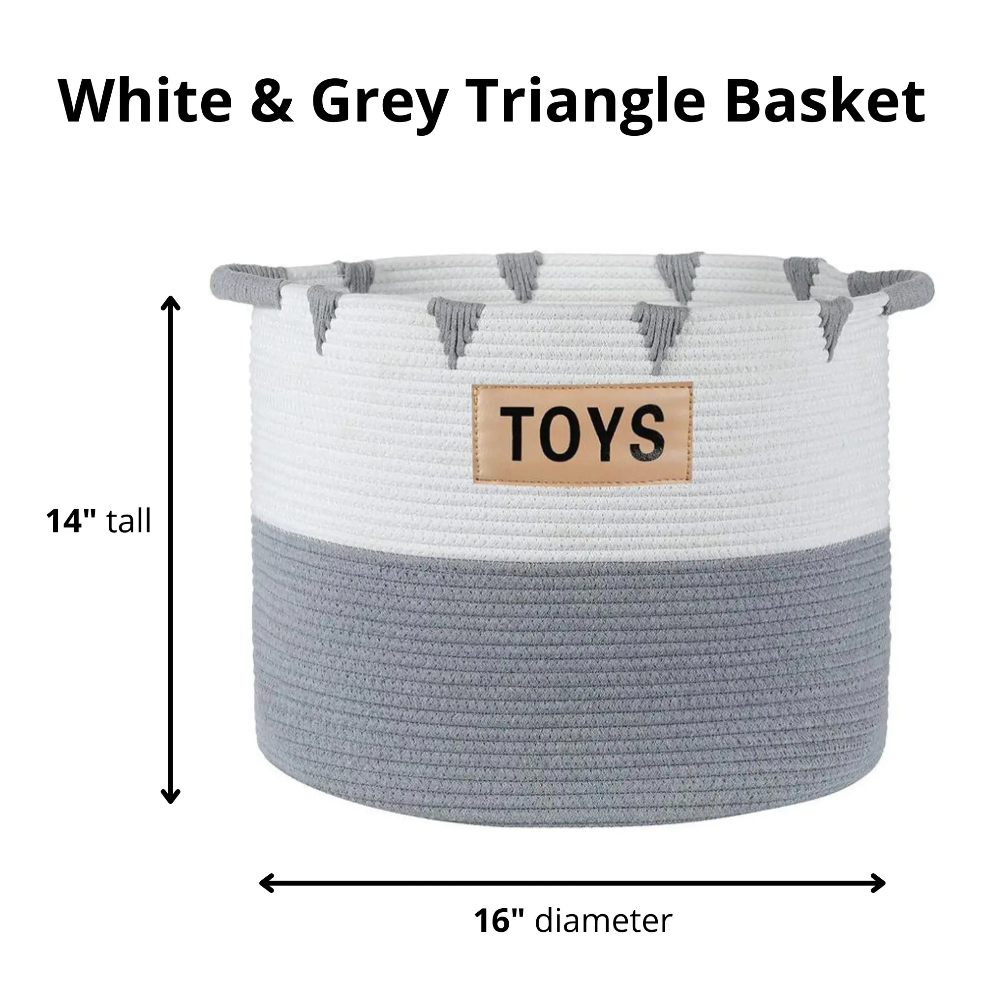 Keep your home clean and organized with the Midlee White & Grey Triangle Toys Basket. Designed for both kids and pet toys, this flexible storage bin helps keep clutter off the floor while blending seamlessly into your home décor. The white and grey color combination with a unique triangle rim design adds a subtle modern touch, making it both functional and stylish for any room in your home.