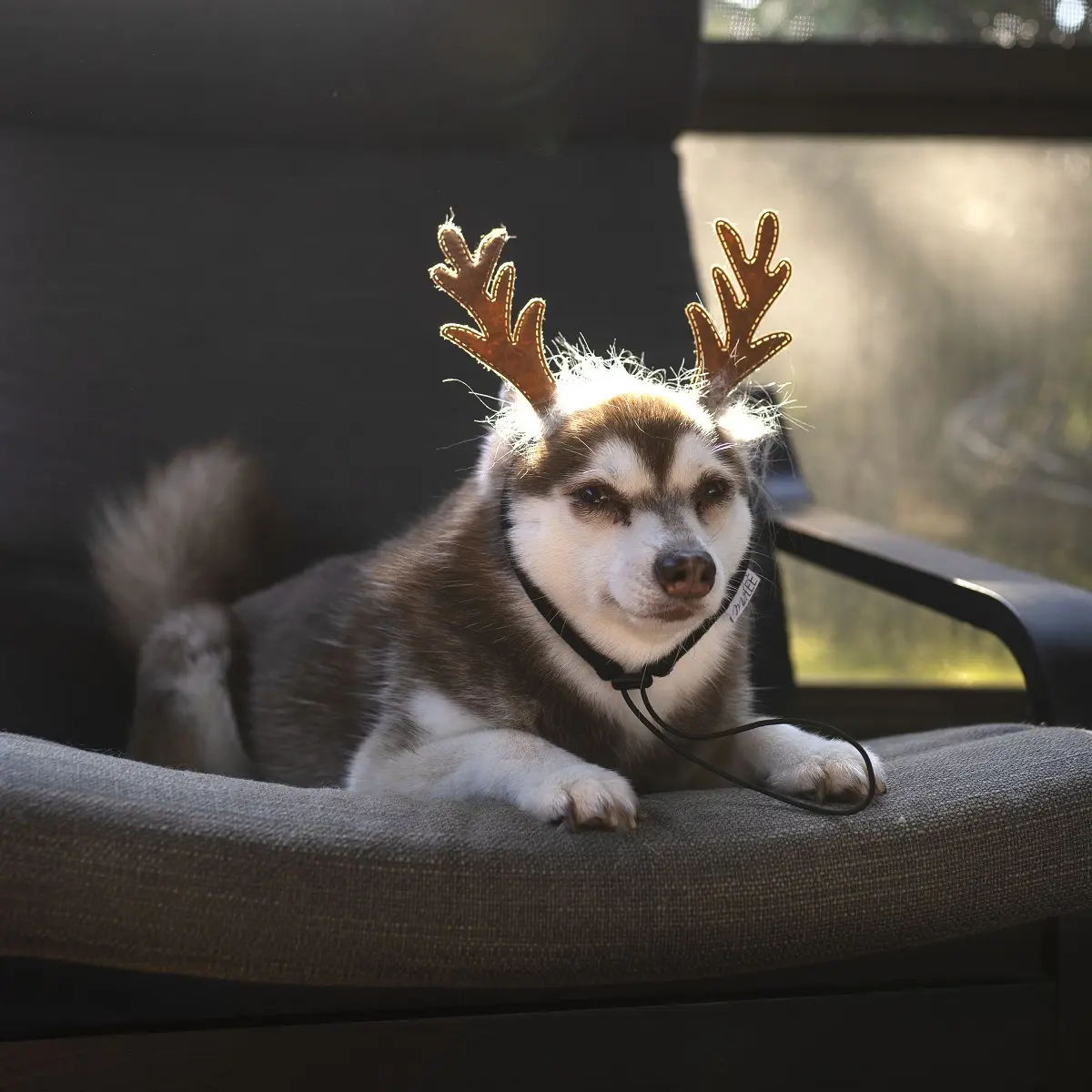 Midlee Furry Antlers Dog Headband – Festive Holiday Costume for Dogs
