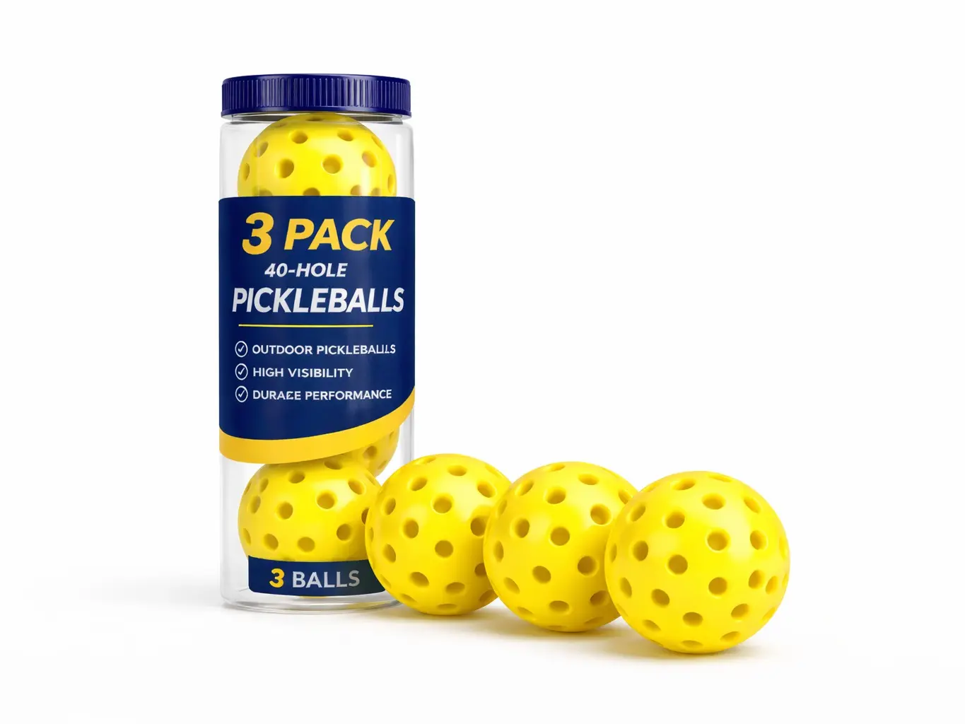 Pickleball Balls 40 Holes Outdoor – Durable High Visibility Training Balls (3 Pack)