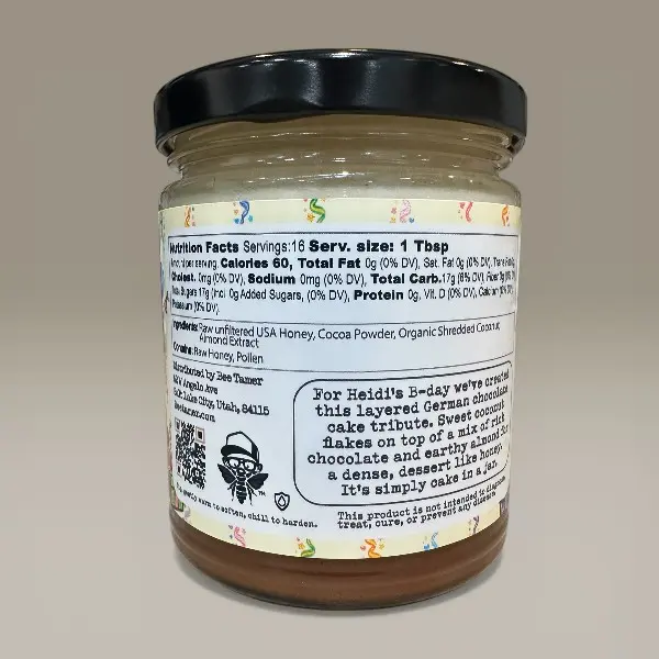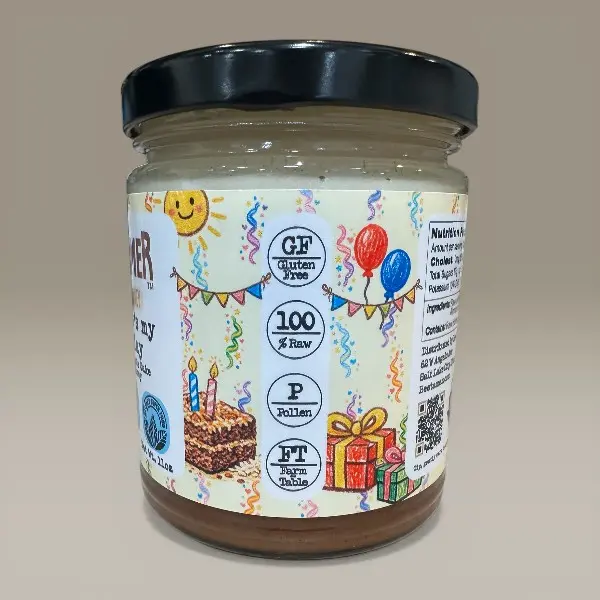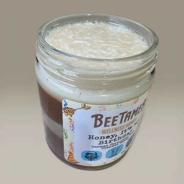 It’s My Birthday is rich, nostalgic, and straight-up celebration in a jar. Inspired by classic German chocolate cake, this raw creamed honey layers deep chocolate, sweet coconut with real coconut flakes, and that signature smooth finish — smooth, indulgent, and worthy of a birthday moment any day of the week.
