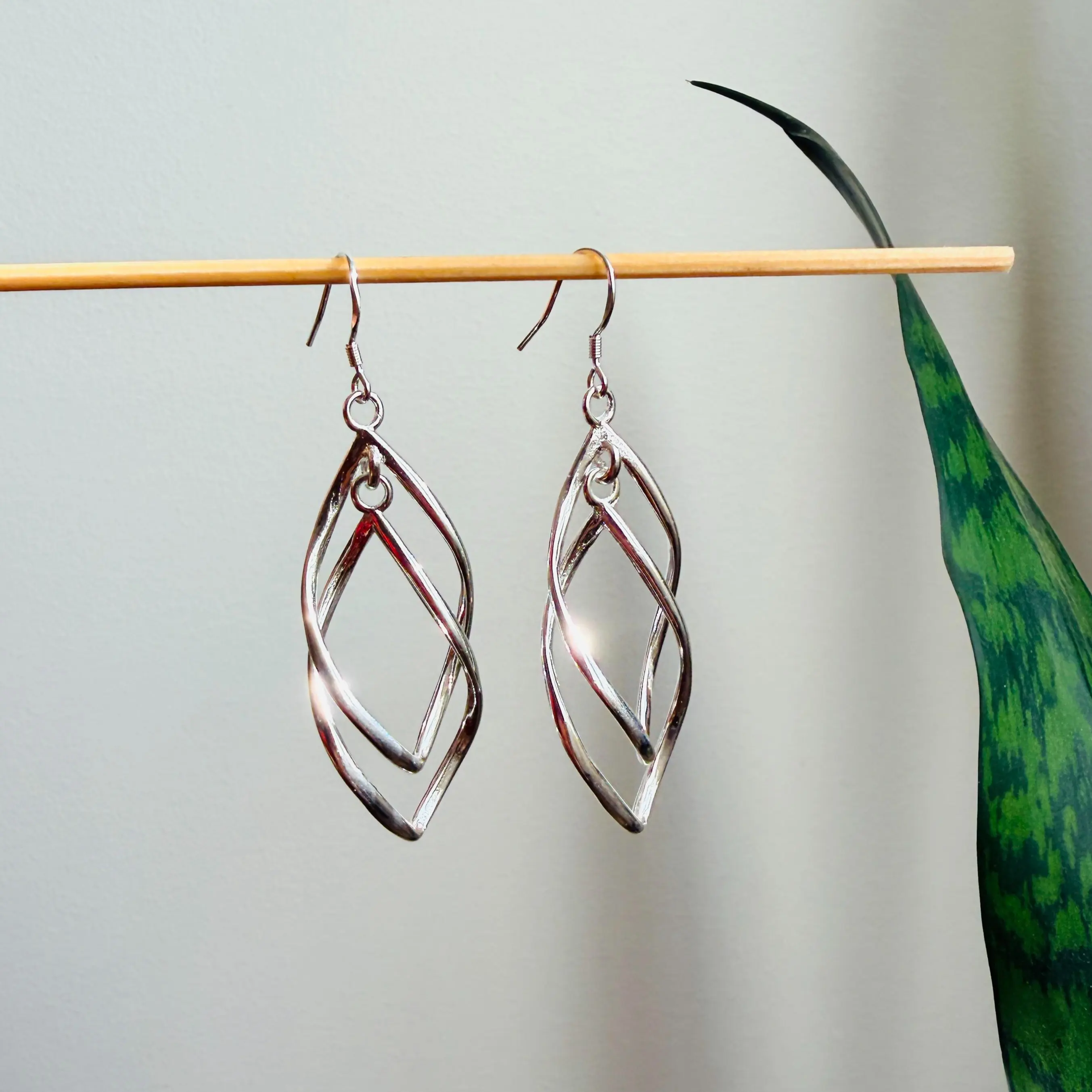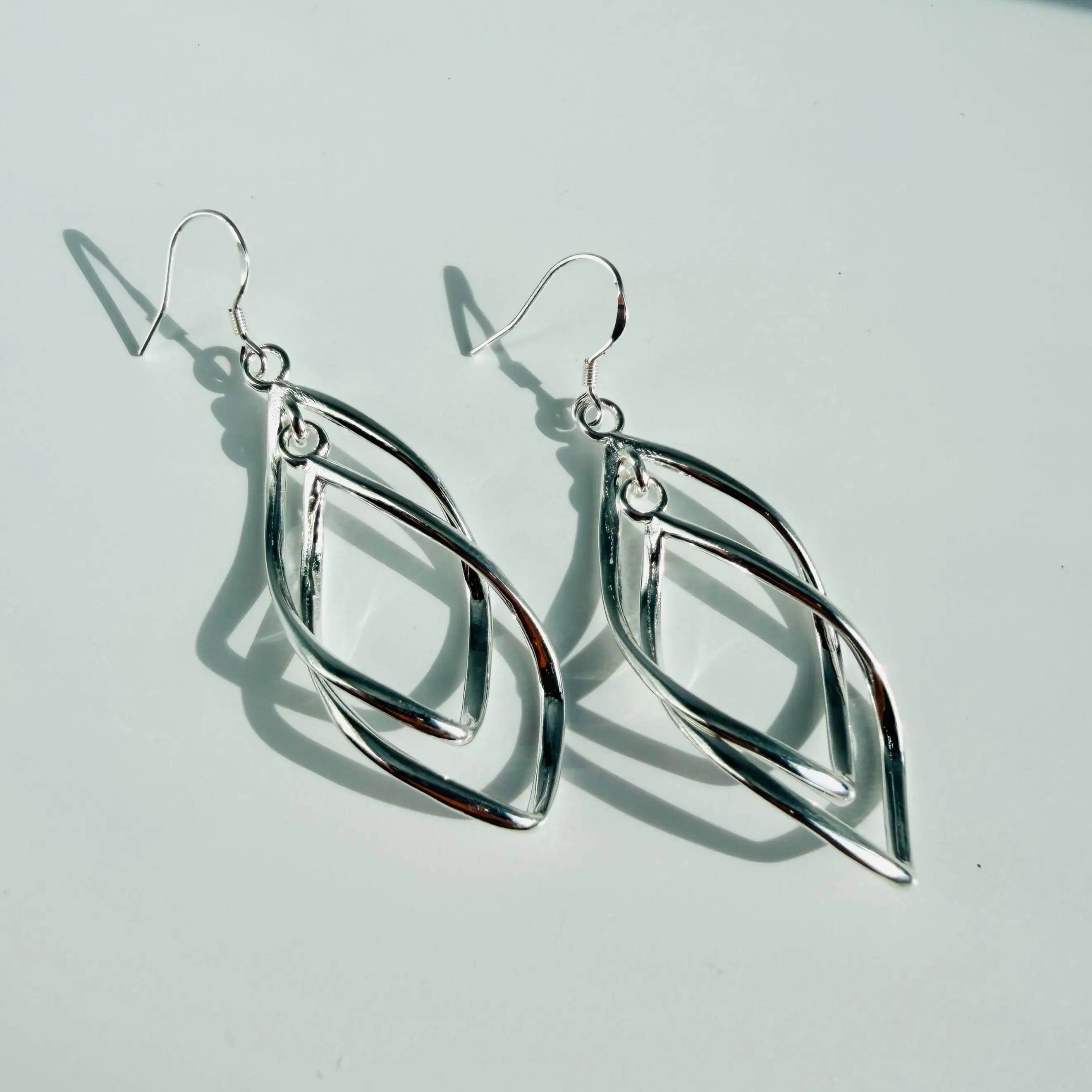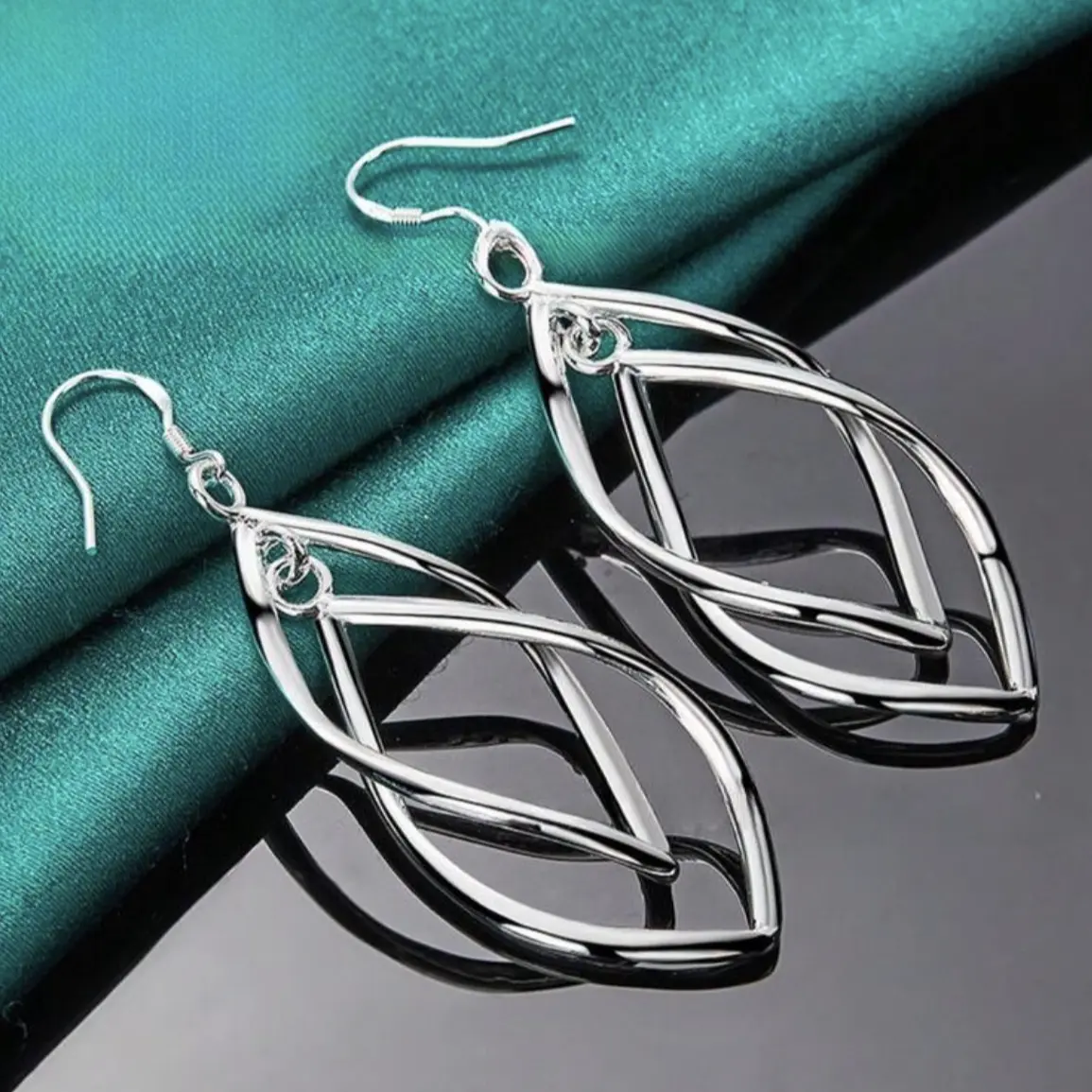 These geometric double layer earrings feature a hollow dangle design with a sleek silver-tone finish. Their modern layered shape adds a stylish and elegant touch to everyday outfits without looking overly heavy.