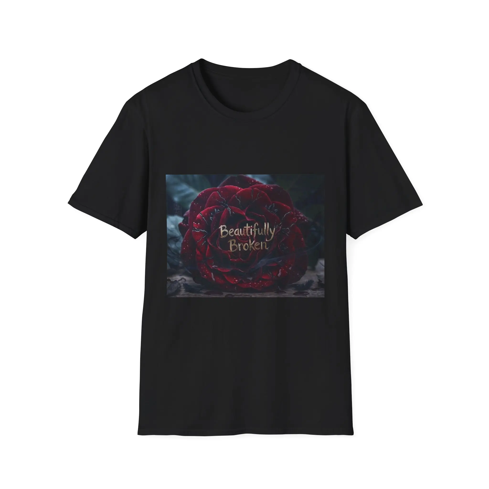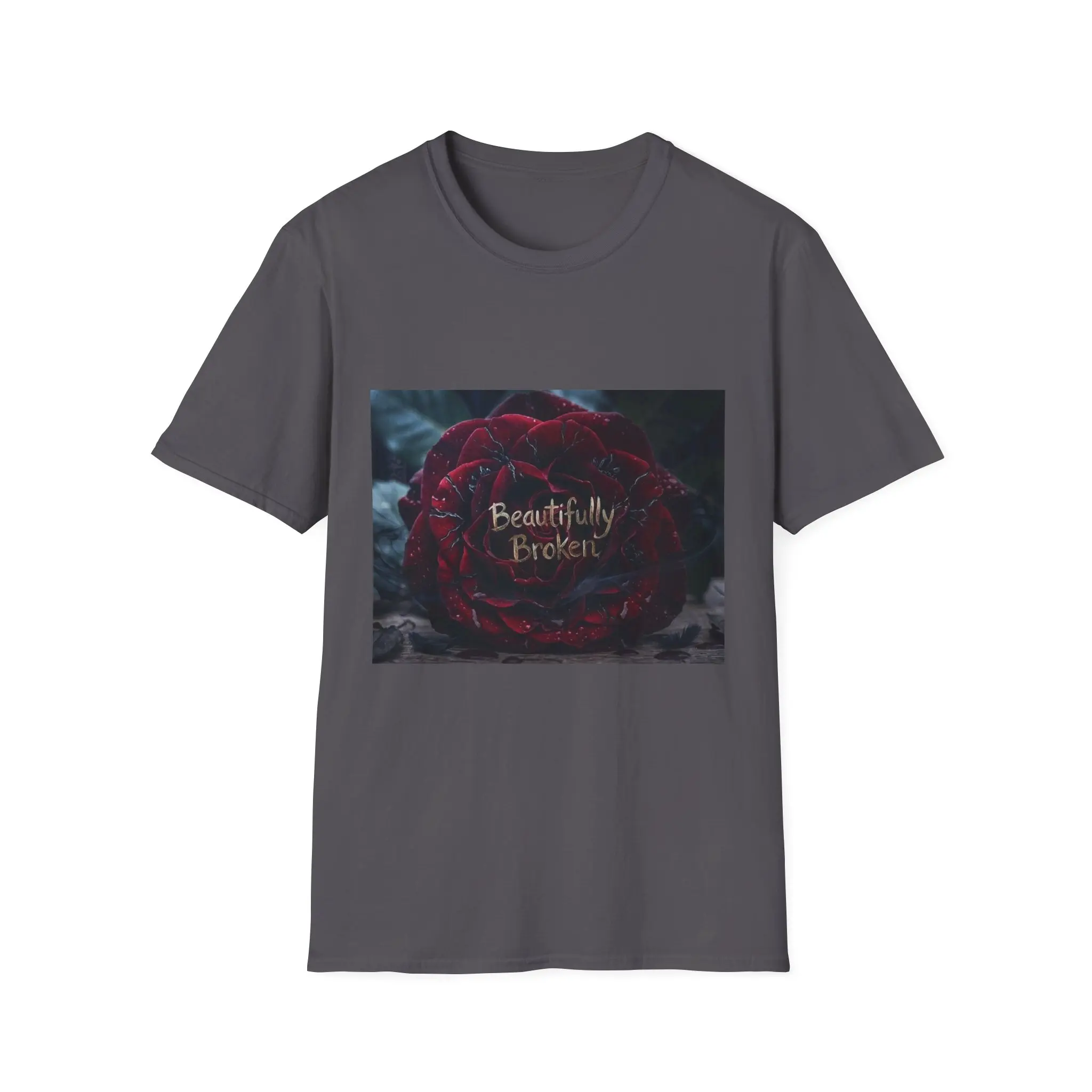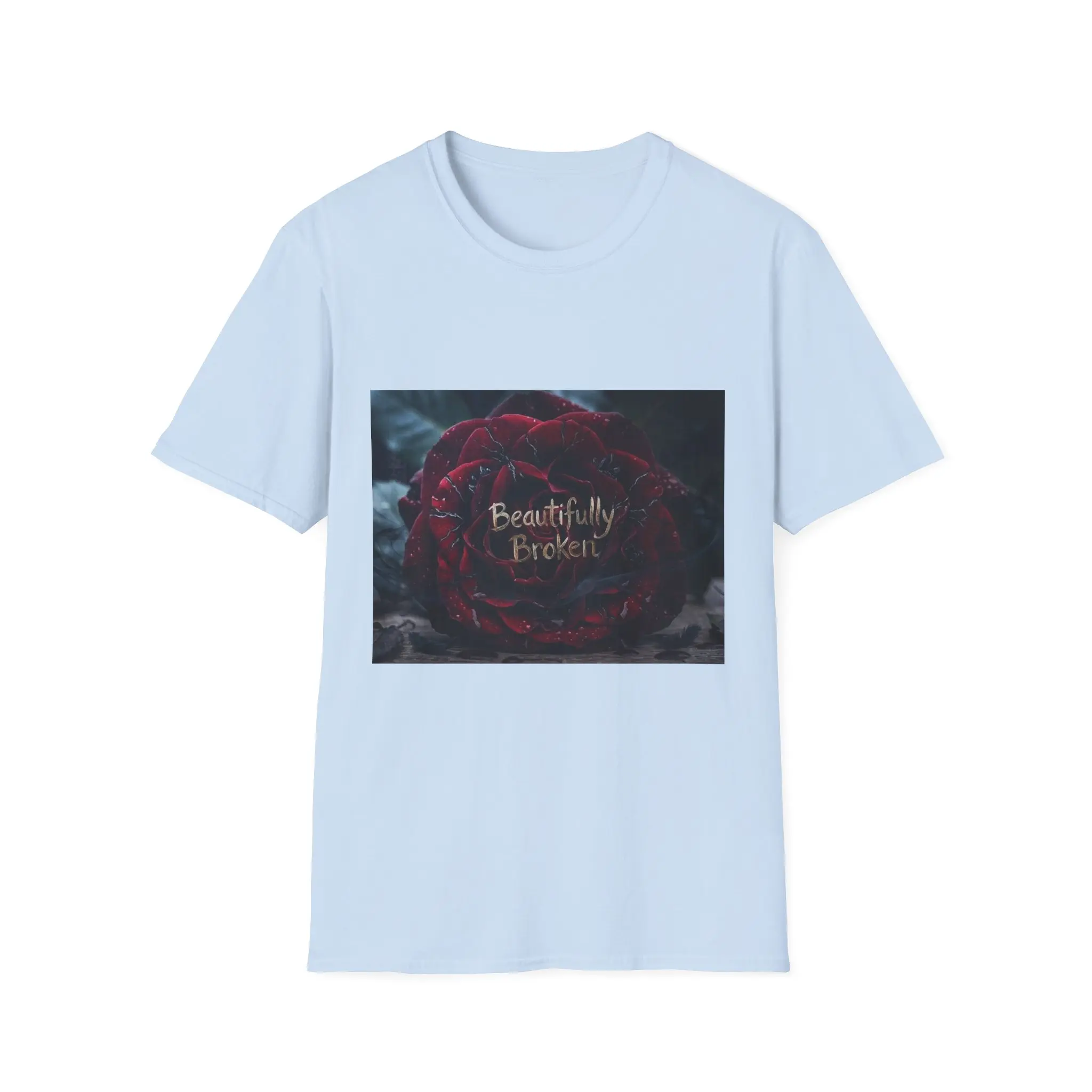 A soft, breathable tee that wears like a quiet statement. The front print shows a deep red rose with hand-lettered text that reads “Beautifully Broken,” blending moody romance with honest vulnerability. Lightweight and smooth against the skin, this shirt carries a relaxed, classic silhouette that layers easily under a jacket or stands alone as the focal point. It’s meant for slow mornings, late-night walks, and those days when you want your clothing to say something real — tender, resistant, poetically worn.