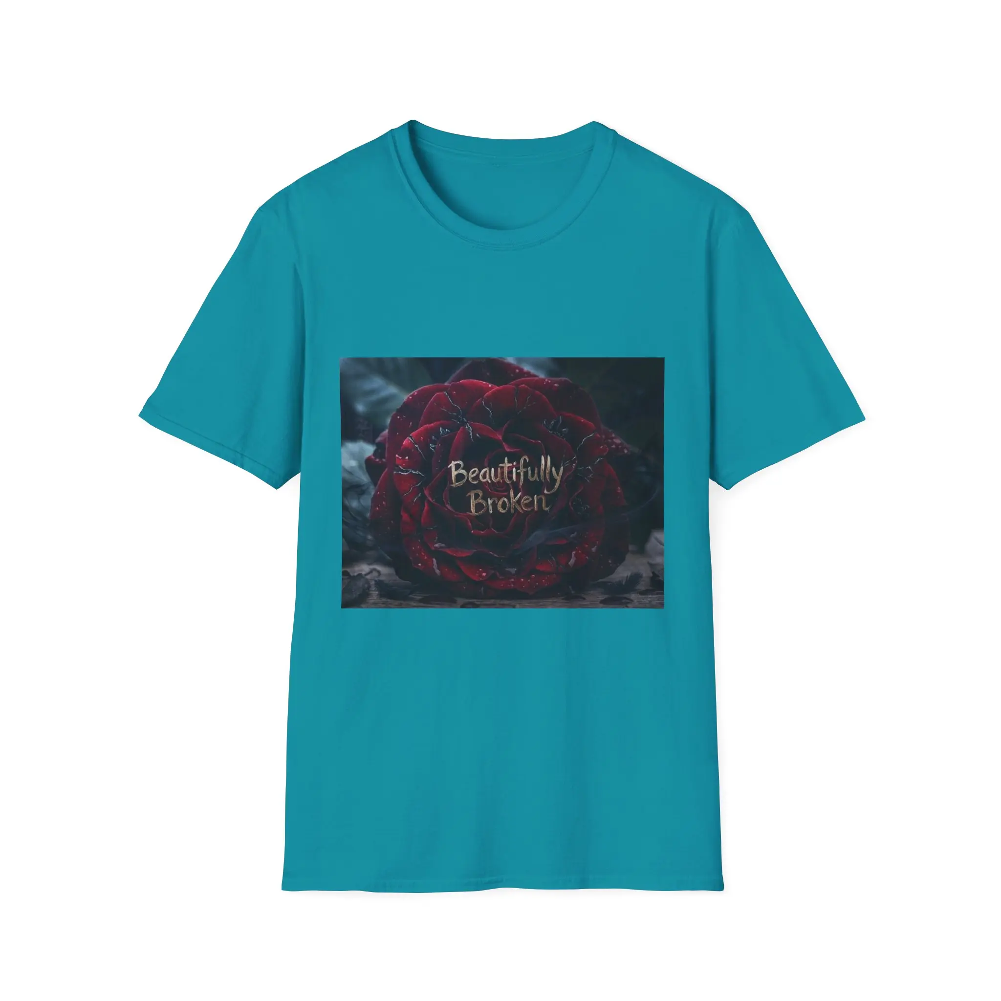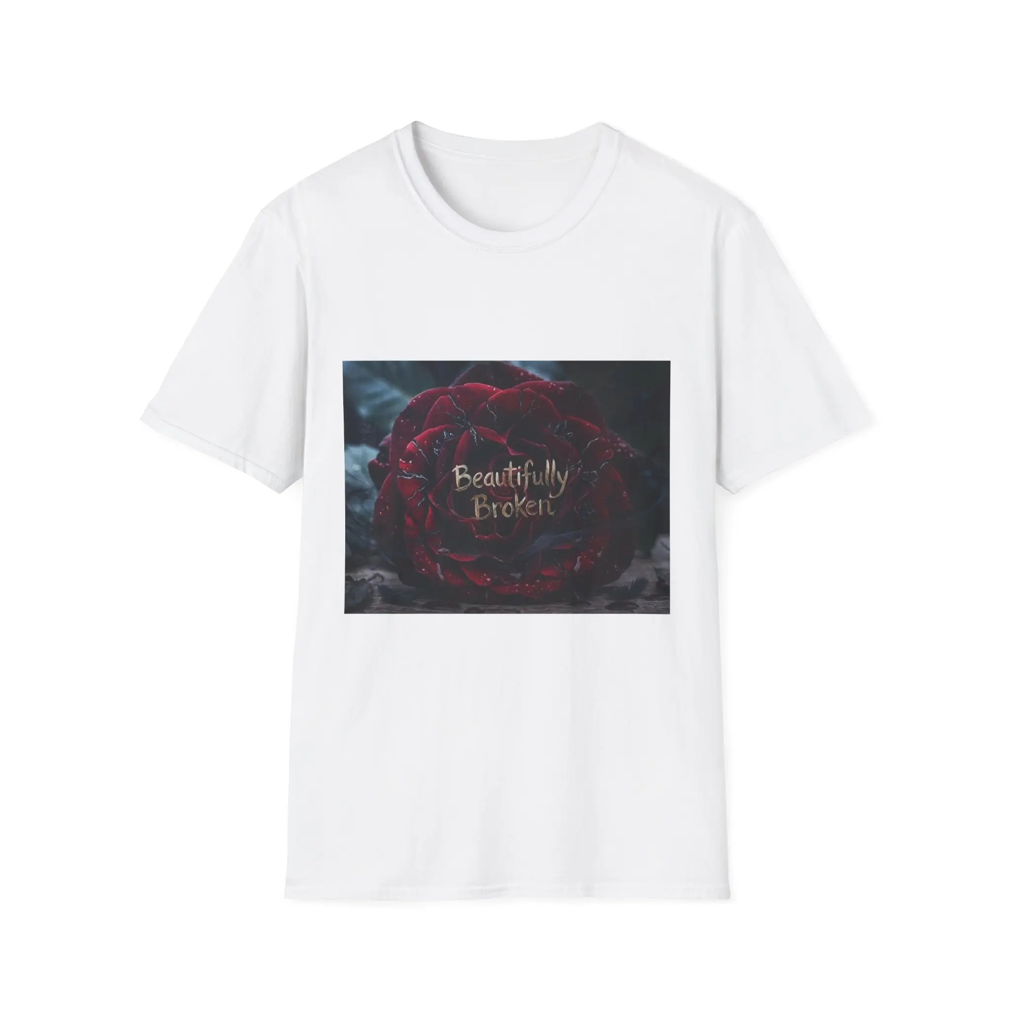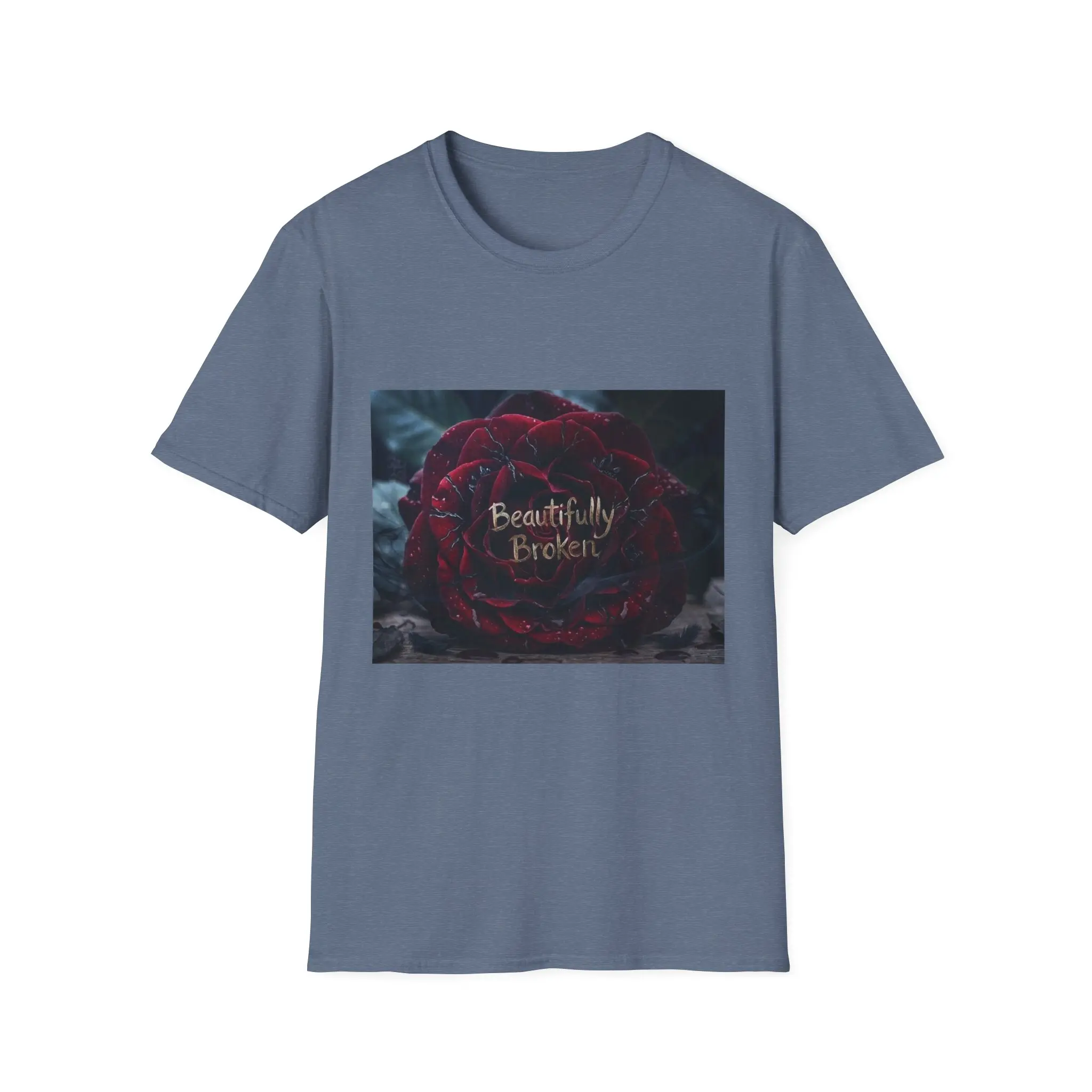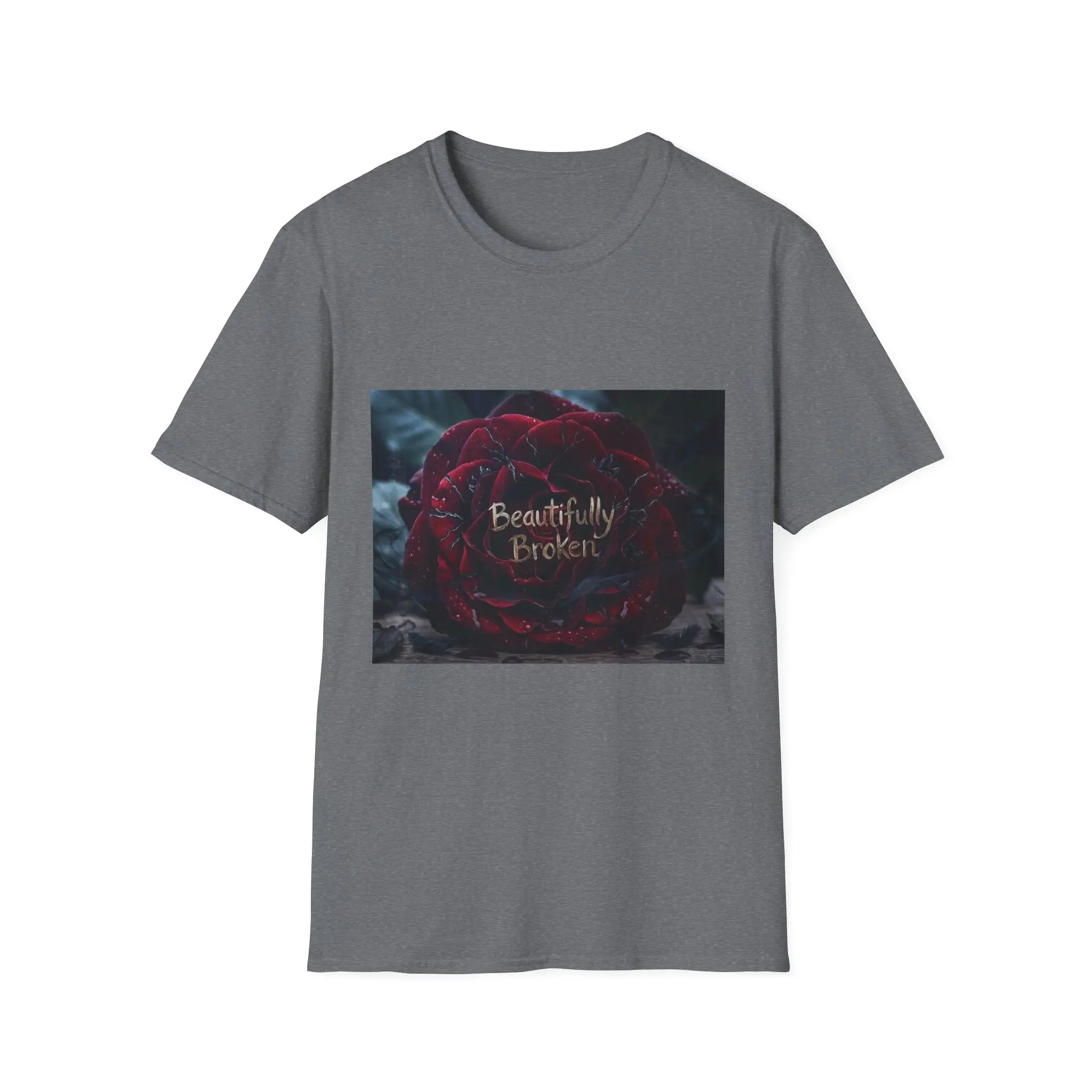 A soft, breathable tee that wears like a quiet statement. The front print shows a deep red rose with hand-lettered text that reads “Beautifully Broken,” blending moody romance with honest vulnerability. Lightweight and smooth against the skin, this shirt carries a relaxed, classic silhouette that layers easily under a jacket or stands alone as the focal point. It’s meant for slow mornings, late-night walks, and those days when you want your clothing to say something real — tender, resistant, poetically worn.