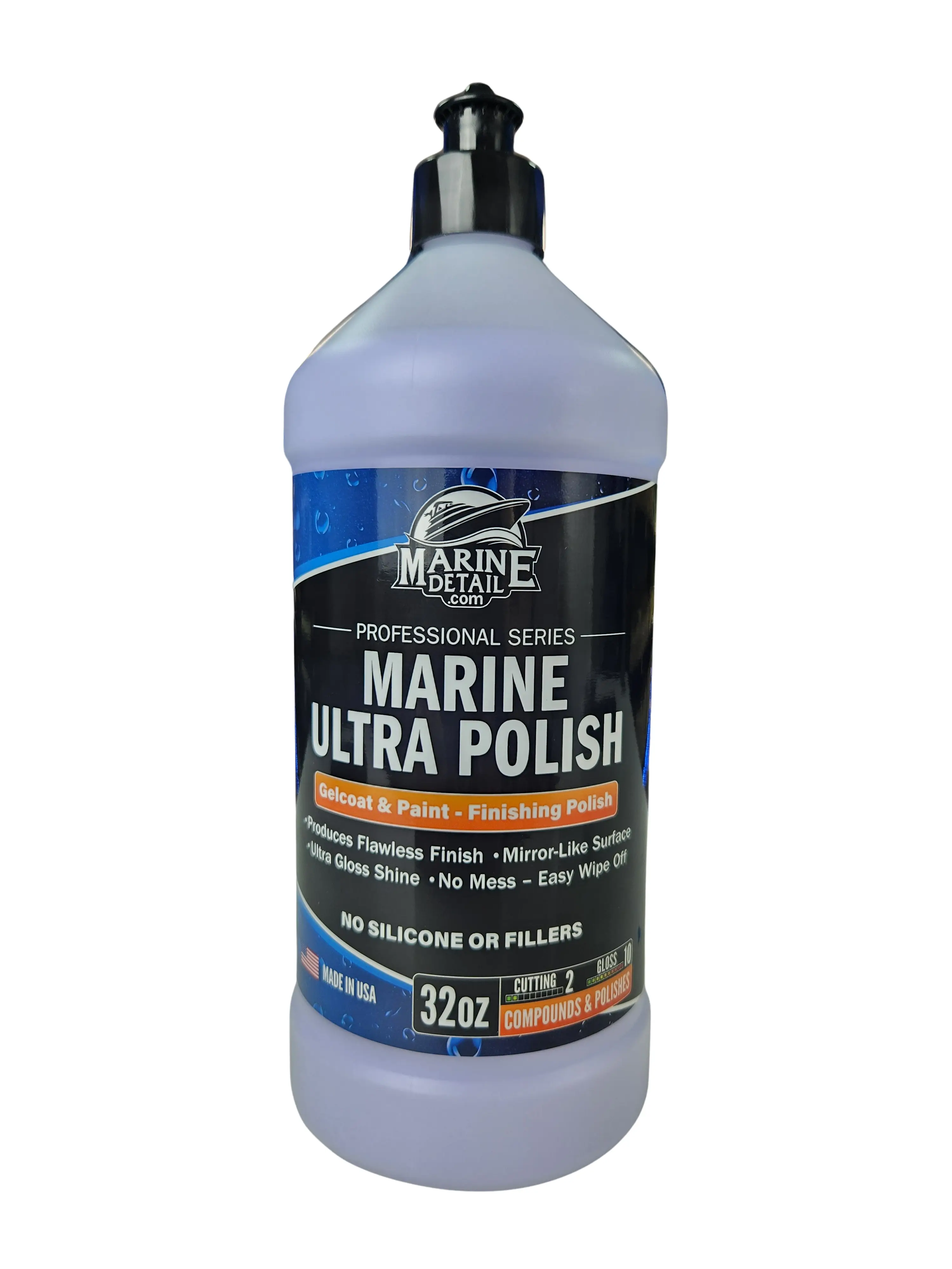 Marine Ultra Polish delivers unmatched clarity, ultra-deep gloss, and a flawless, mirror-like finish... the ultimate final step for professional-grade results on gelcoat and paint. As one of the most advanced finishing polishes in the marine industry, it is meticulously formulated to achieve optical-grade reflection and depth, producing a true showroom-quality finish every time.