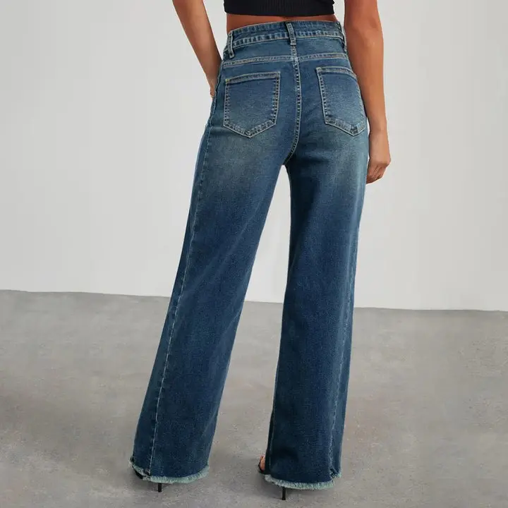 Frayed Seam Washed Low Rise Straight Leg Jeans