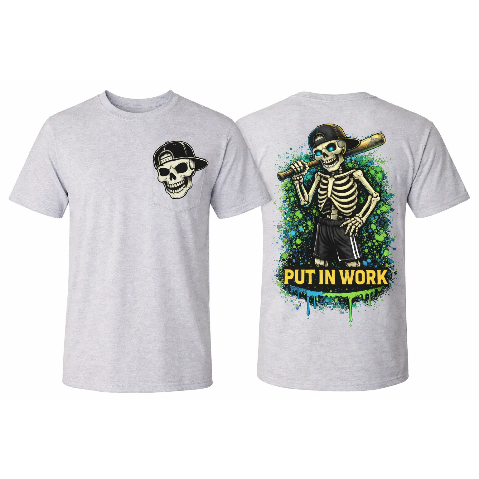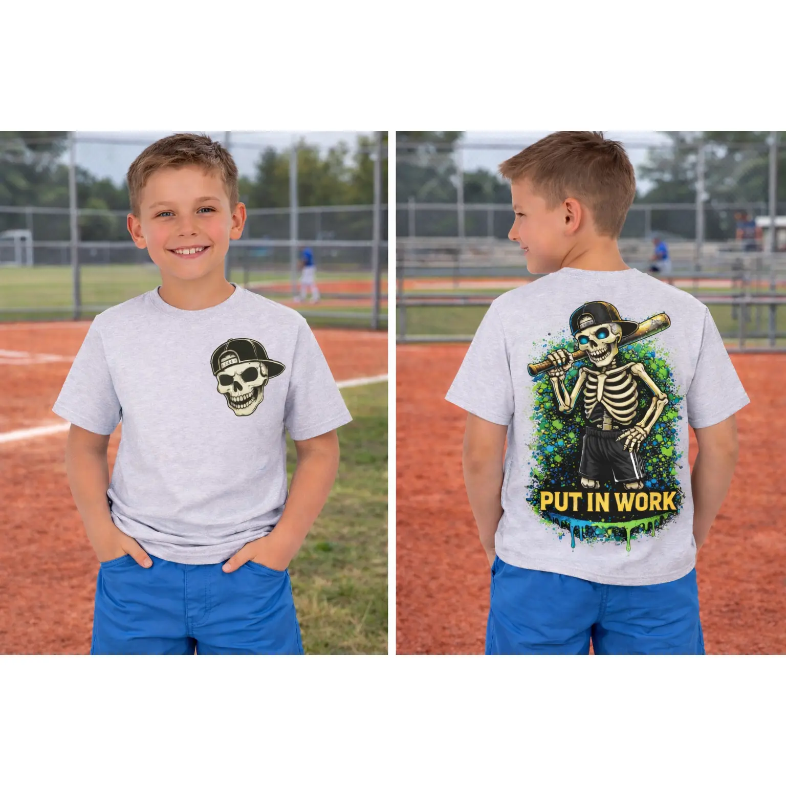 The Put In Work Tee is built for the ballplayers who grind when nobody’s watching. Featuring a bold skeleton hitter with that don’t-quit mindset, this design brings serious energy to the field, the cage, and everywhere in between.